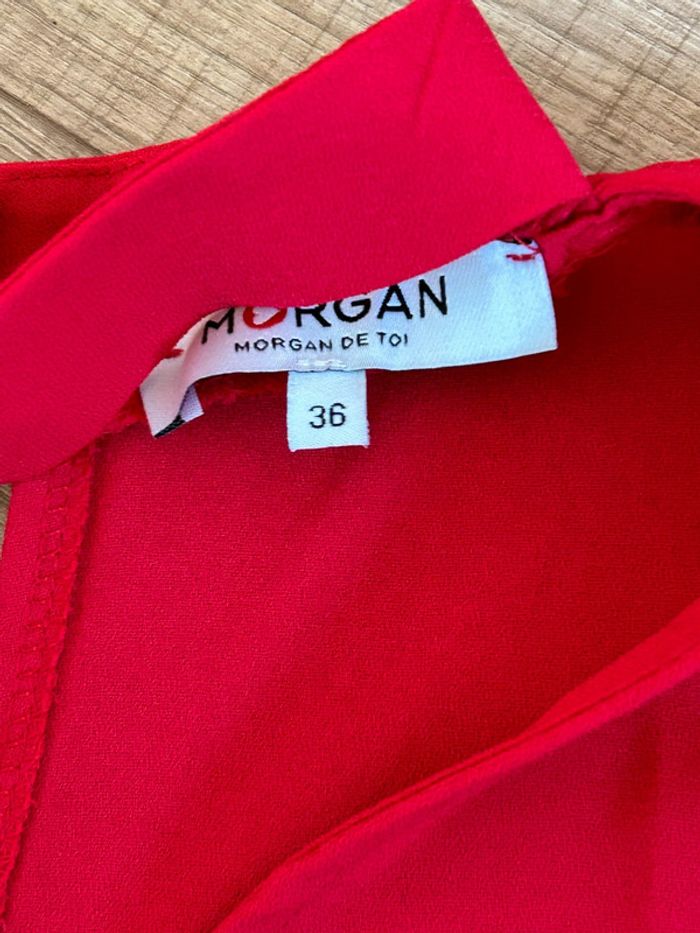 Jolie robe rouge à manches courtes, de marque Morgan. Taille 36. Jamais portée, état neuf. aisselle à aisselle 42 cms taille 41 cms longueur depuis épaule 88 cms 100% polyester Le prix reste négociable dans la limite du raisonnable. Un petit cadeau dans le colis 🌸 (Boîte 31)