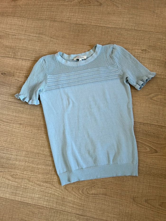 Haut bleu clair à manches courtes Morgan taille XS jamais porté - photo numéro 1
