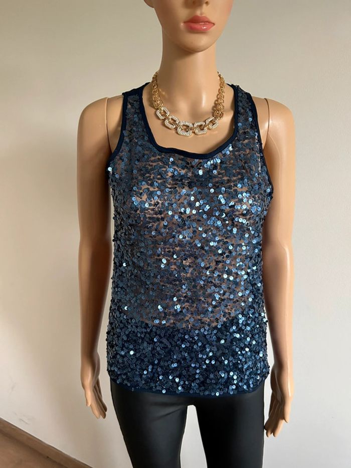 Blouse marine transparente avec sequins Bisou’S Project taille S/M jamais portée - photo numéro 2
