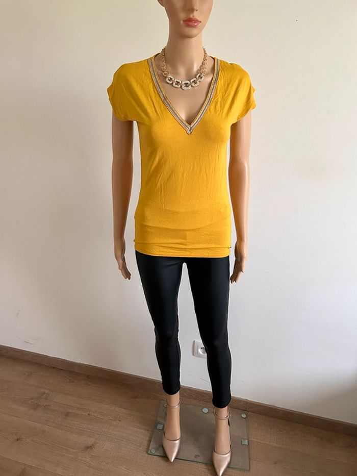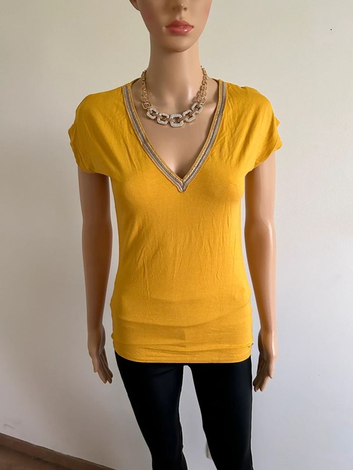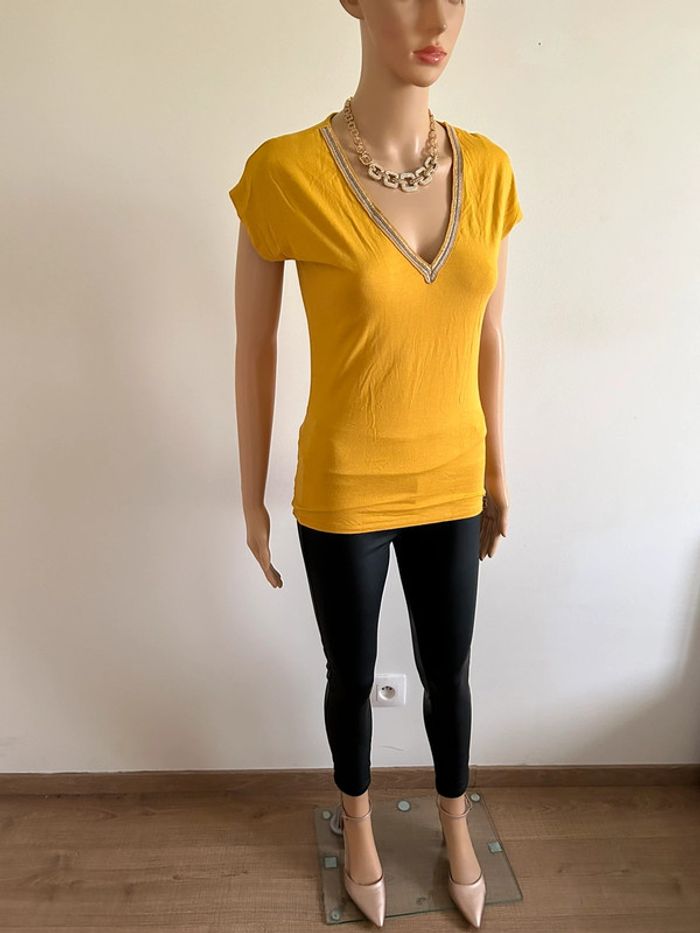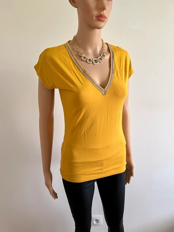 Teeshirt jaune moutarde Morgan taille S bon état - photo numéro 5
