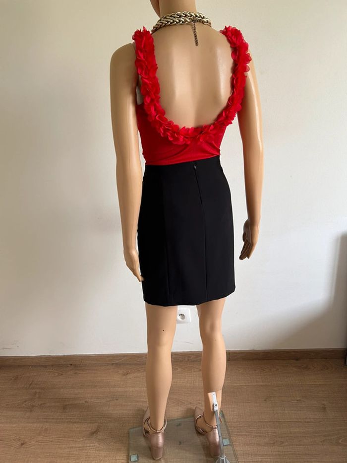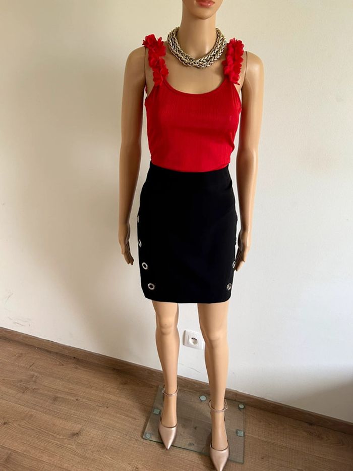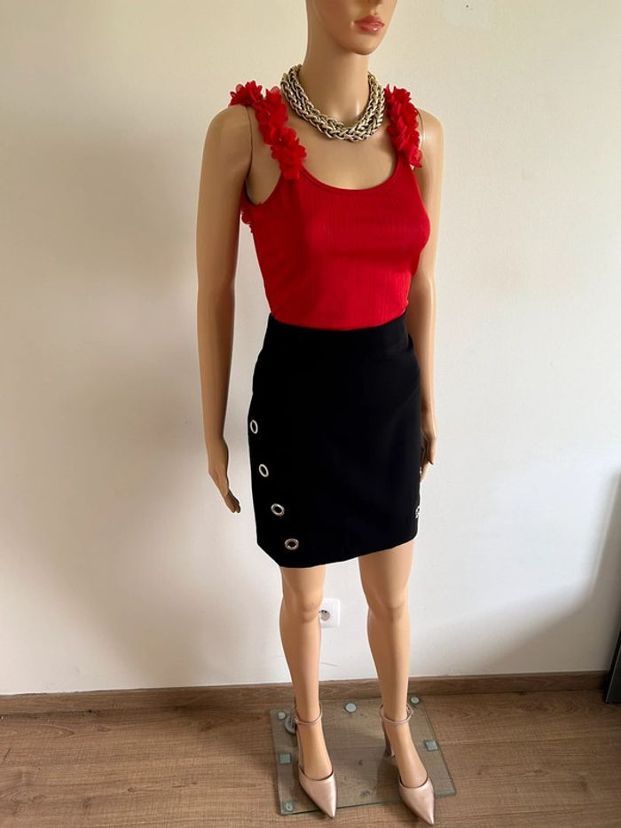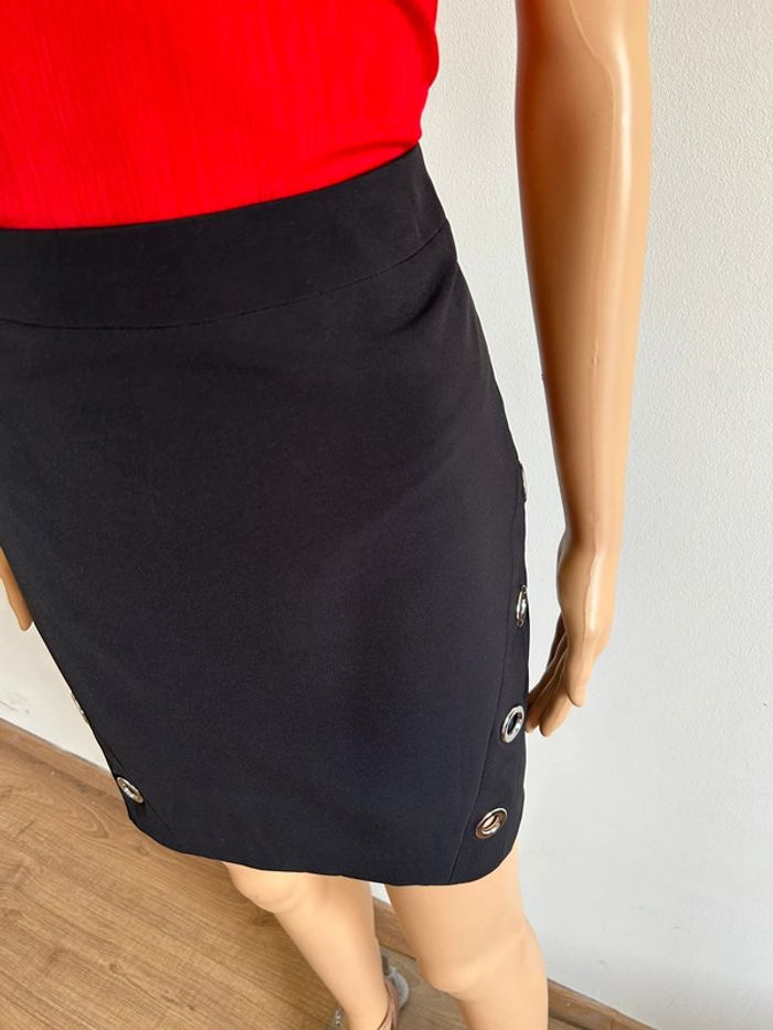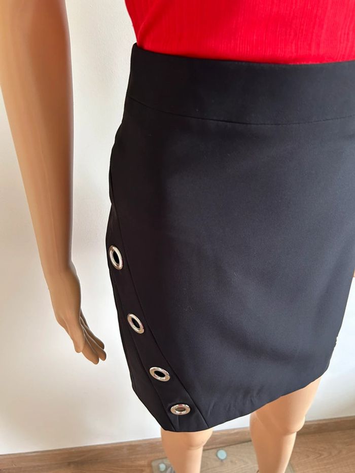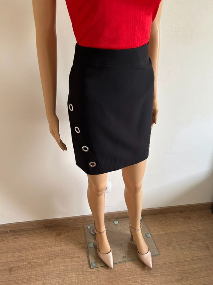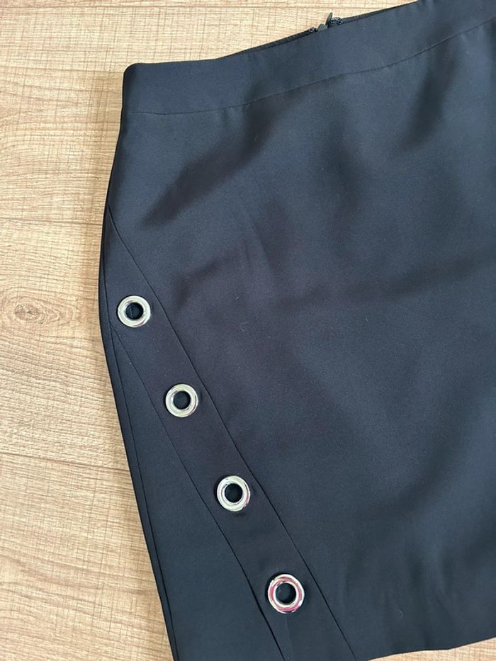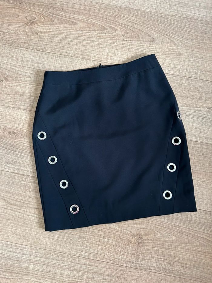 Jolie jupe noire avec œillets argentés, de marque Morgan.