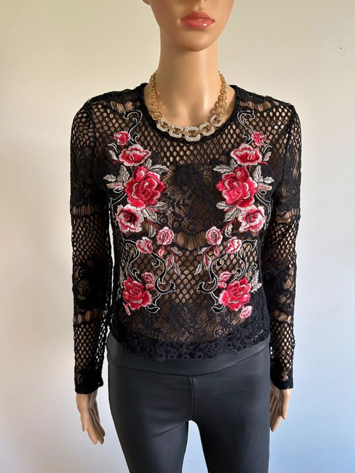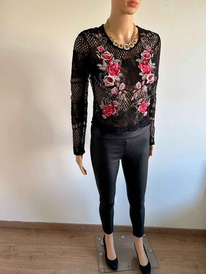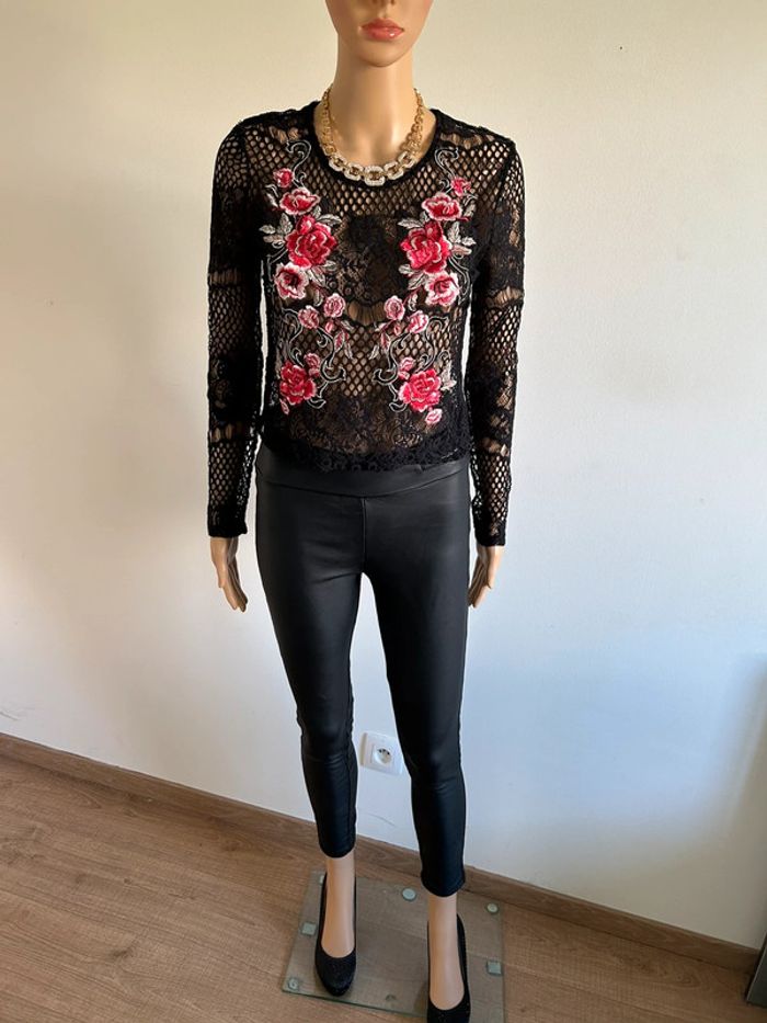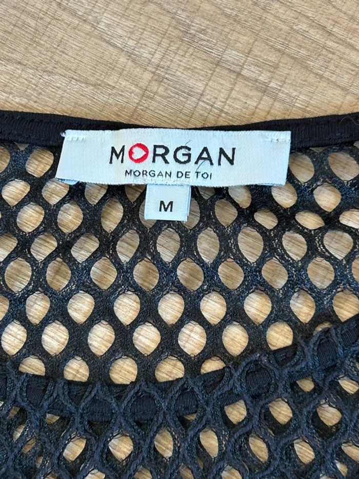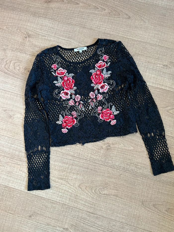 Joli haut noir en mailles à manches longues, avec broderies, de marque Morgan.
