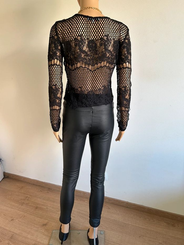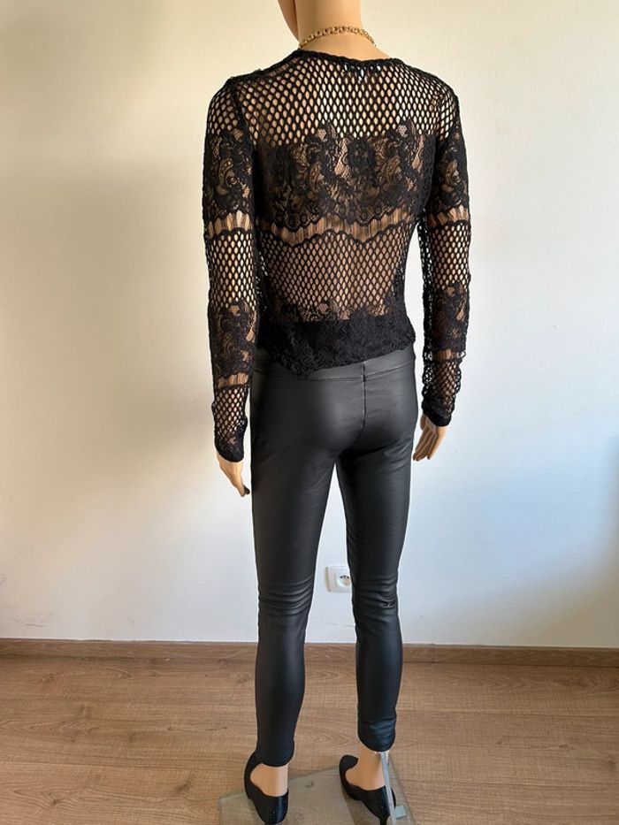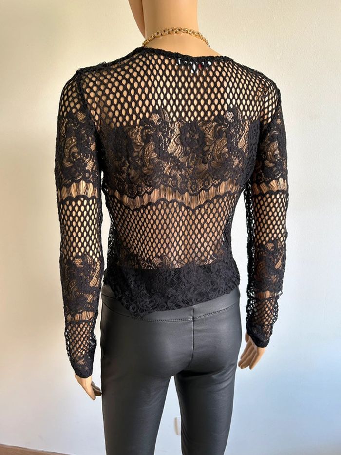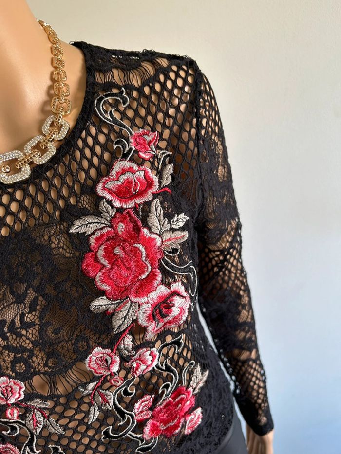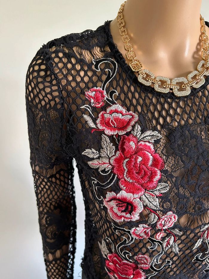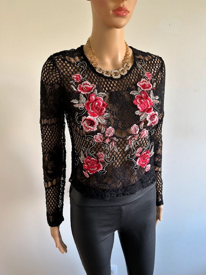 Joli haut noir en mailles à manches longues, avec broderies, de marque Morgan.