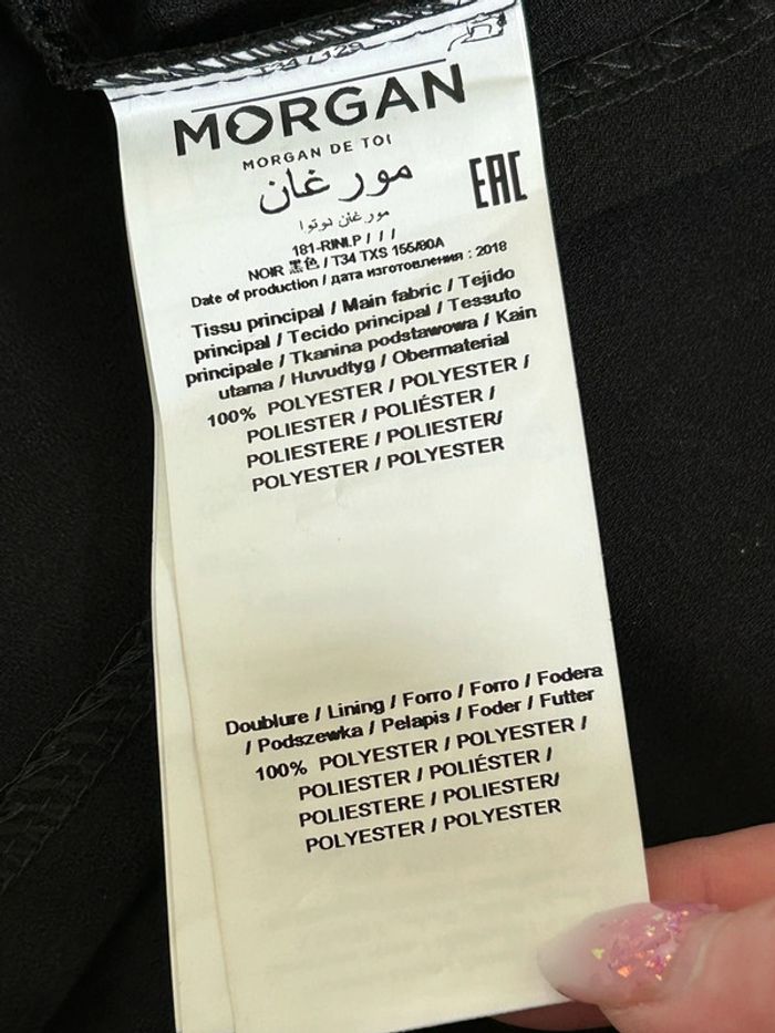 Jolie robe noire à manches courtes, de marque Morgan. Taille 34. Elle est neuve avec étiquette. aisselle à aisselle 42 cms épaule à épaule 34 cms taille 35 cms longueur depuis épaule 89 cms 100% polyester Le prix reste négociable dans la limite du raisonnable. Un petit cadeau dans le colis 🌸 (Boîte 14)