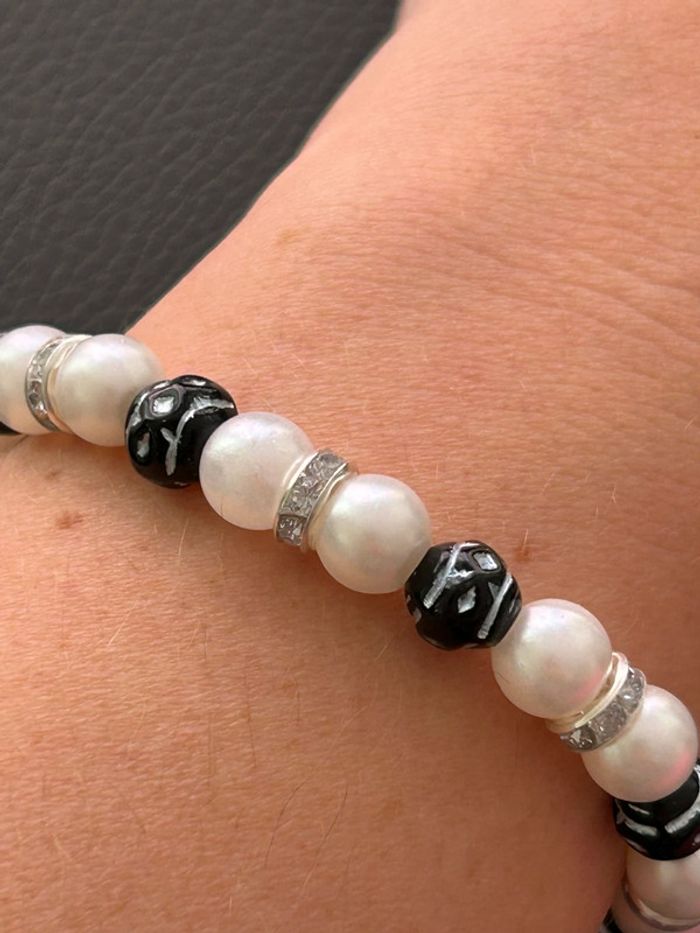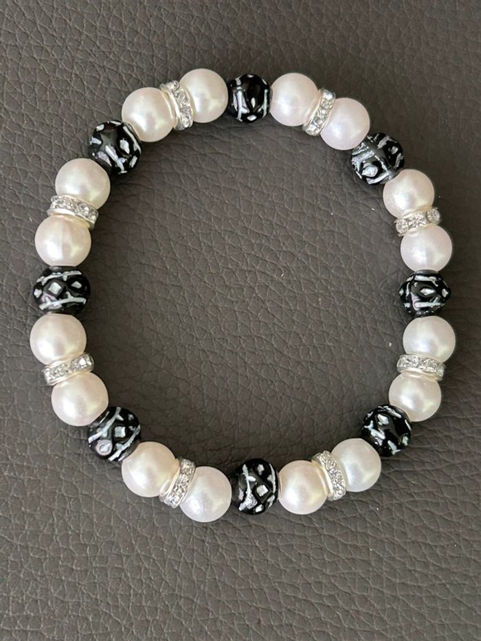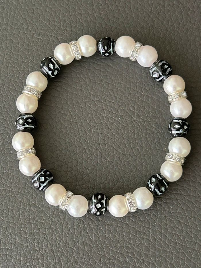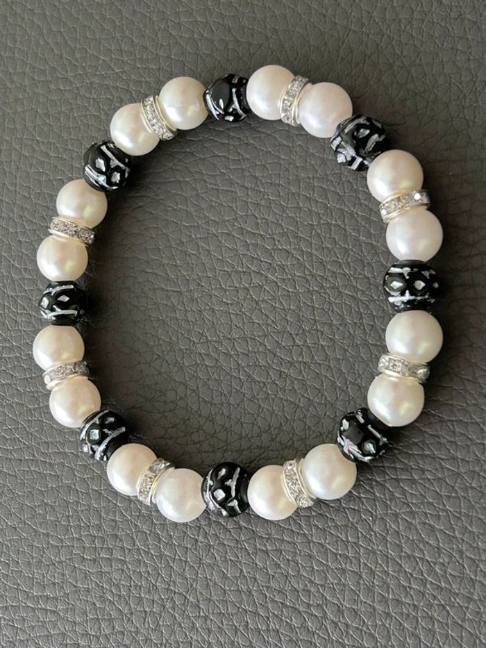 Bracelet nacré et noir en perles taille unique jamais porté - photo numéro 1