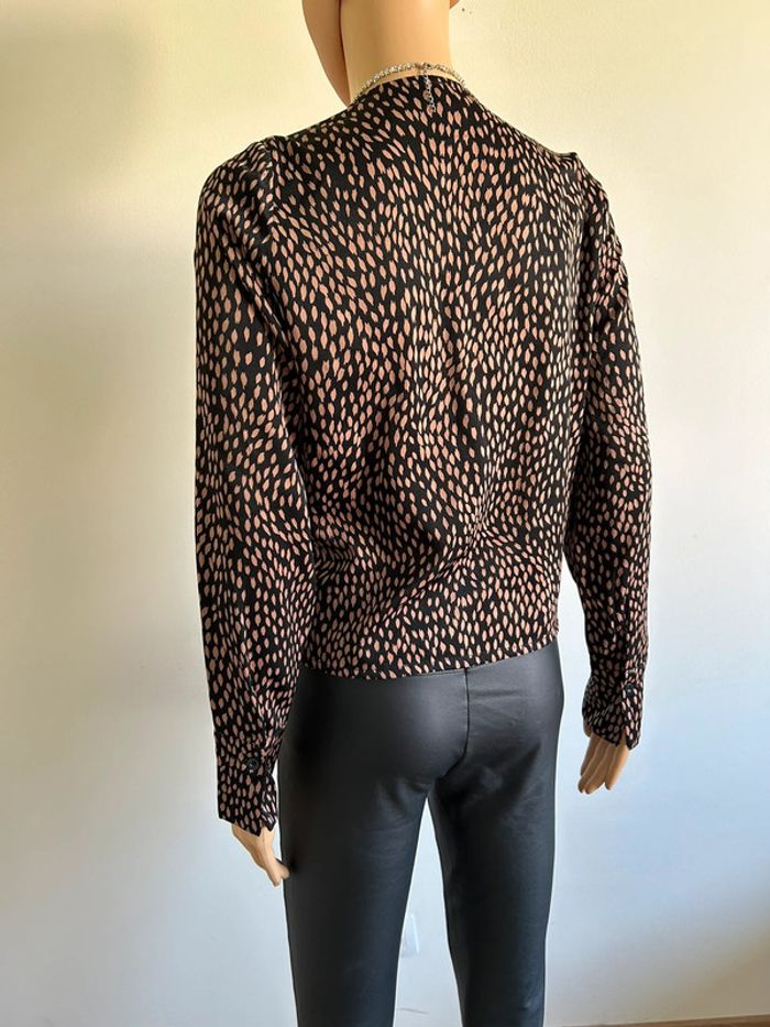 Magnifique blouse noire et beige à manches longues, de marque La Fée Maraboutée. Taille 36. Jamais portée, état neuf. aisselle à aisselle 49 cms épaule à épaule 35 cms longueur manches 62 cms taille 54 cms longueur depuis épaule 51 cms Étiquette intérieure de composition coupée. Le prix reste négociable dans la limite du raisonnable. Un petit cadeau dans le colis 🌸 (Boîte 8)