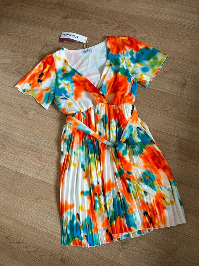 Robe multicolore neuve à manches courtes Lilie Plus taille XL/XXL - photo numéro 1