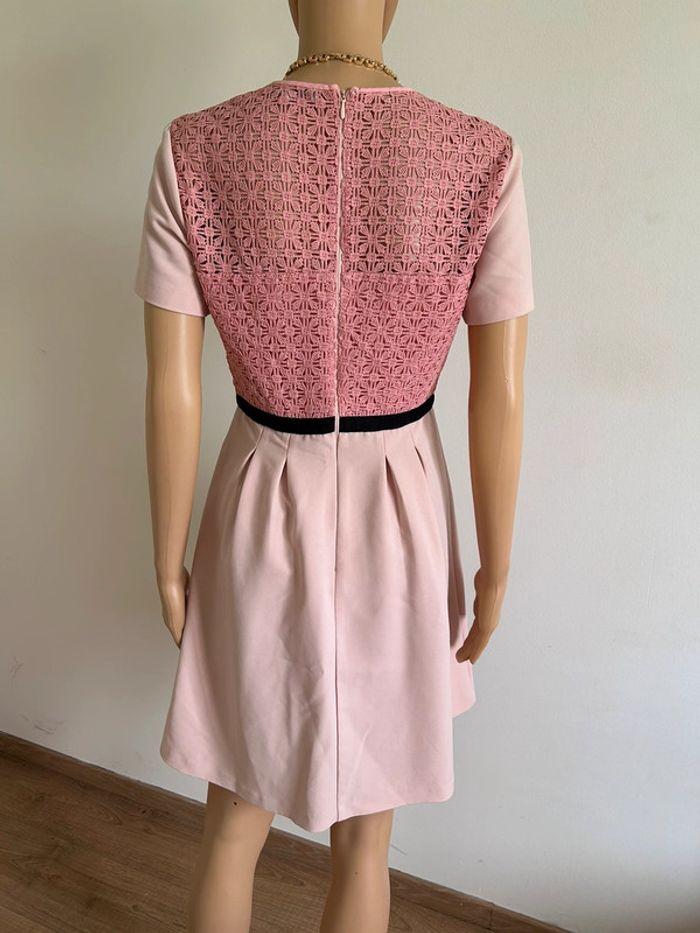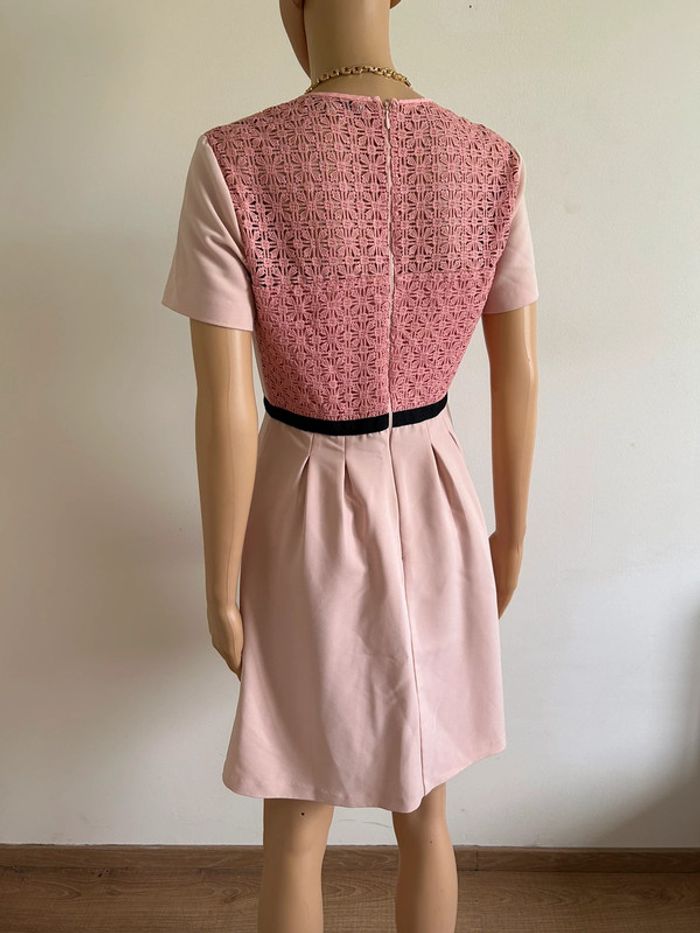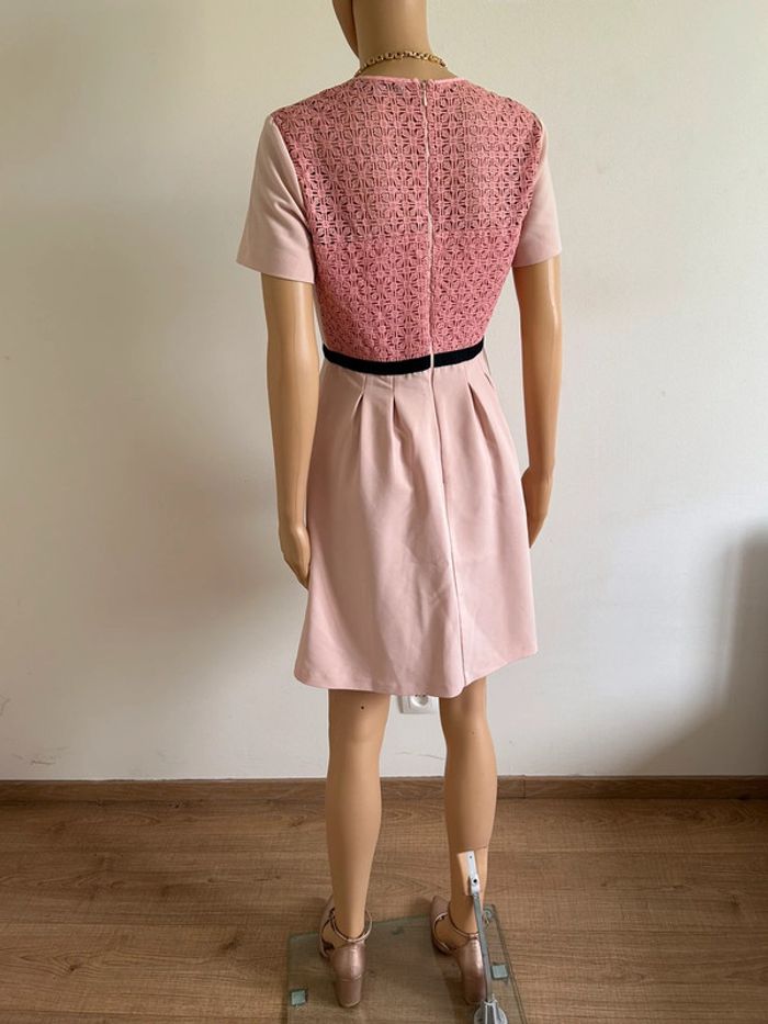 Magnifique robe rose à manches courtes, avec dentelle, de marque Morgan. Fermeture dans le dos. Taille 36. Portée une fois, en très bon état. aisselle à aisselle 42 cms épaule à épaule 38 cms taille 36 cms longueur depuis épaule 85 cms 93% polyester et 7% elasthanne Le prix reste négociable dans la limite du raisonnable. Un petit cadeau dans le colis 🌸 (Boîte 36)