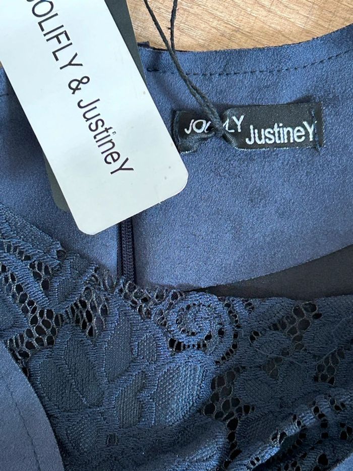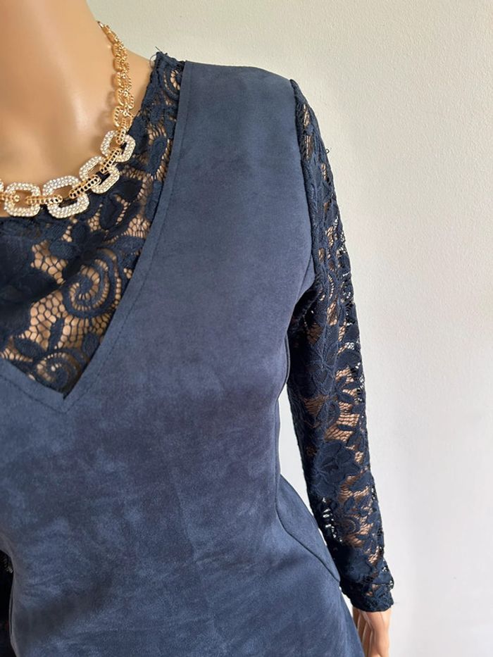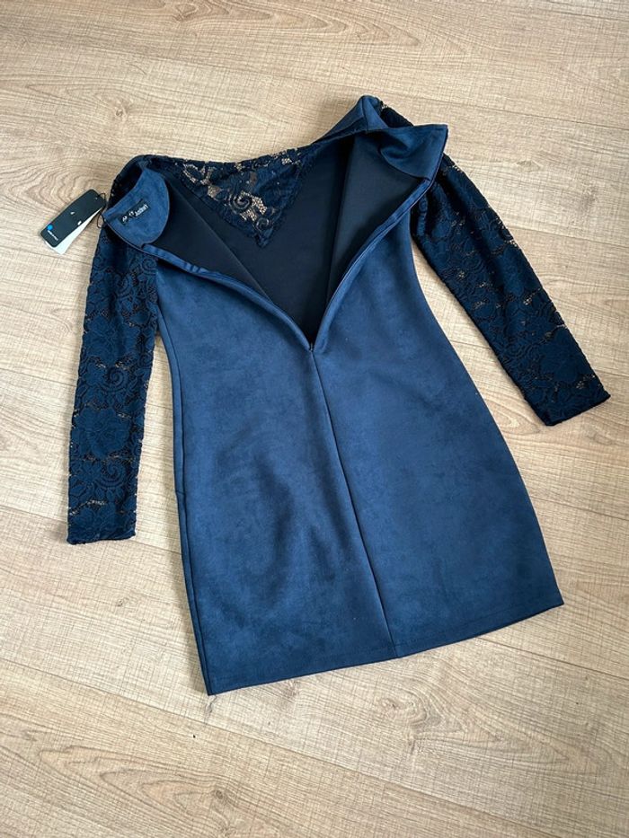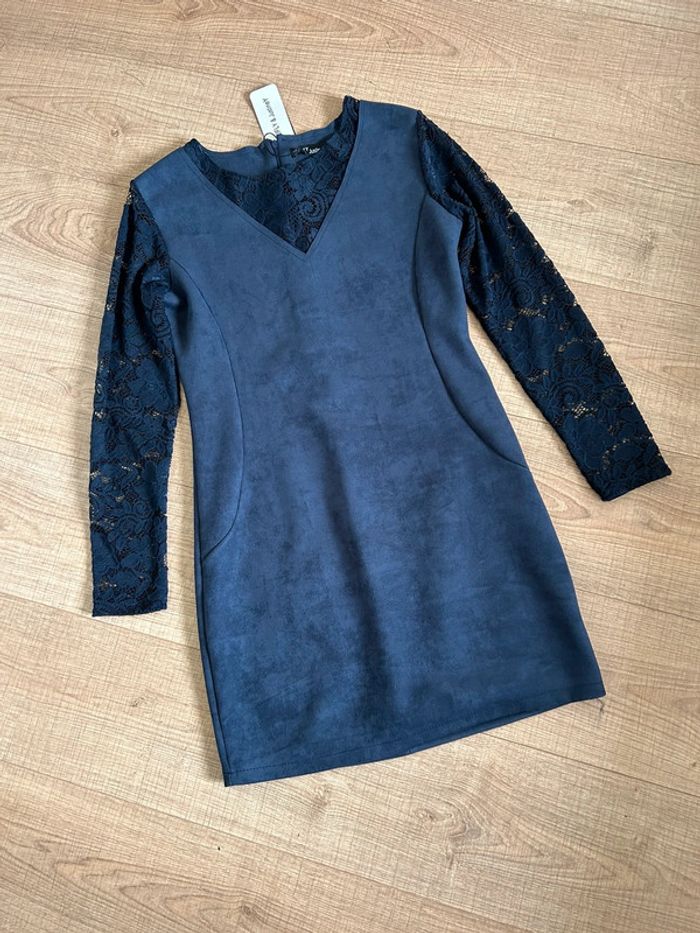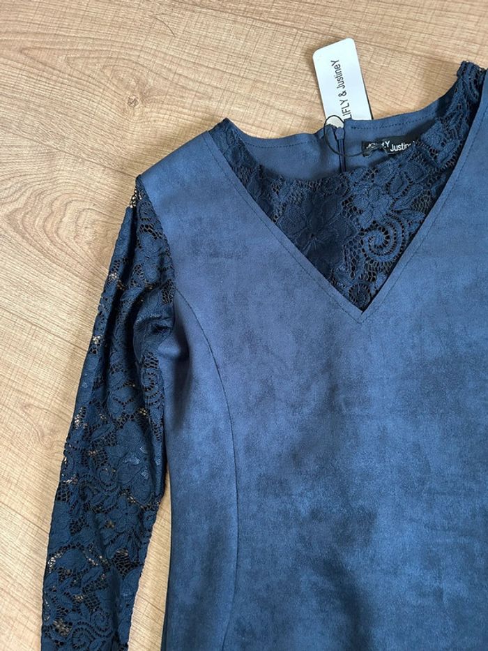 Magnifique robe bleue marine en suédine, avec manches longues en dentelle, de marque Jolifly & Justine Y. Fermeture dans le dos. Taille L. Elle est neuve avec étiquette. aisselle à aisselle 45 cms et plus épaule à épaule 41 cms et plus longueur manches 59 cms taille 40 cms et plus longueur depuis épaule 84 cms Le tissu est extensible 47% rayon, 29% polyester, 19% nylon et 5% elasthanne Le prix reste négociable dans la limite du raisonnable. Un petit cadeau dans le colis 🌸 (Boîte 19)