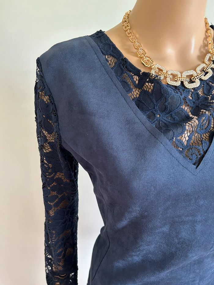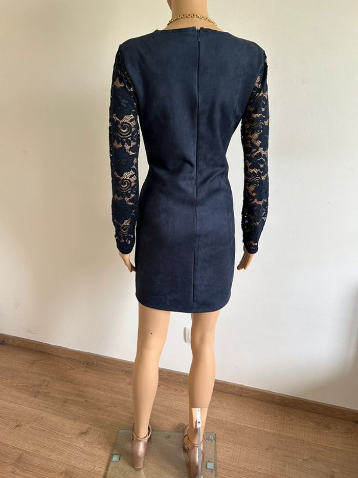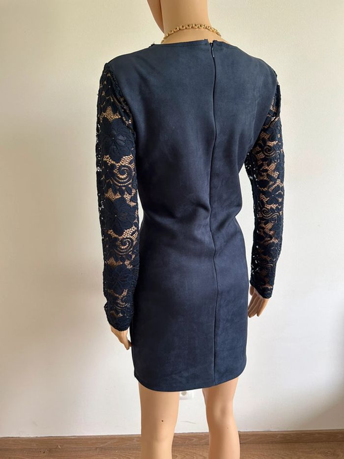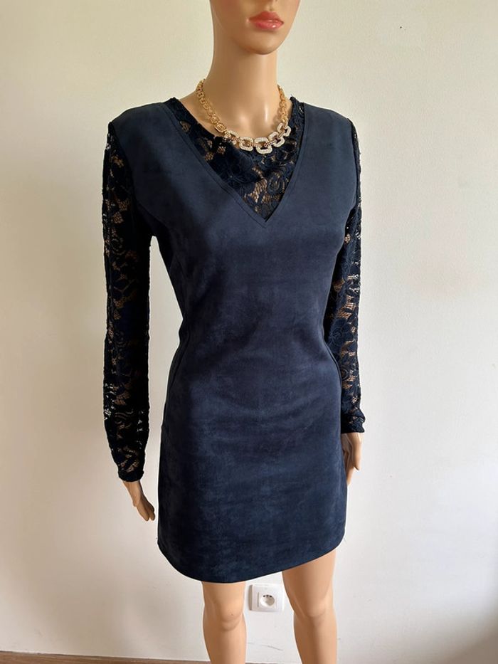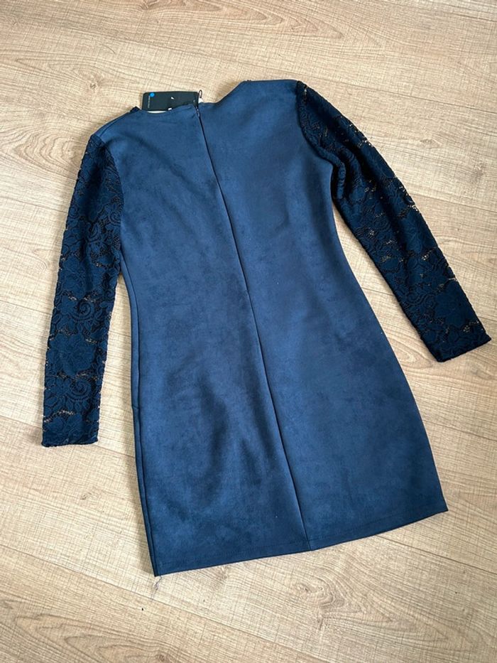 Magnifique robe bleue marine en suédine, avec manches longues en dentelle, de marque Jolifly & Justine Y. Fermeture dans le dos. Taille L. Elle est neuve avec étiquette. aisselle à aisselle 45 cms et plus épaule à épaule 41 cms et plus longueur manches 59 cms taille 40 cms et plus longueur depuis épaule 84 cms Le tissu est extensible 47% rayon, 29% polyester, 19% nylon et 5% elasthanne Le prix reste négociable dans la limite du raisonnable. Un petit cadeau dans le colis 🌸 (Boîte 19)