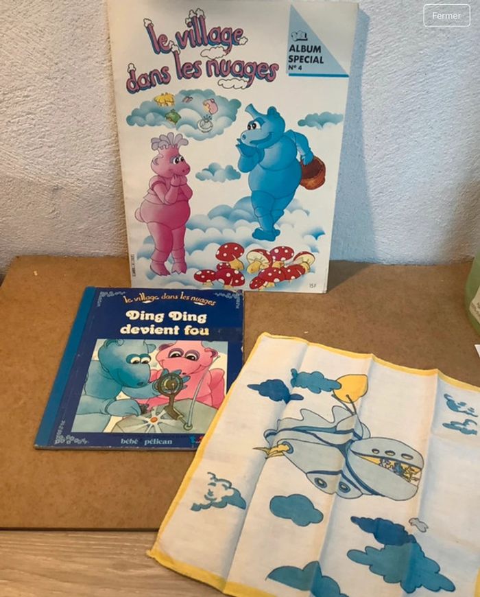 Lot comprenant 2 livres , un en bon état et l autre satisfaisant et un mouchoir en tissus neuf année 1983