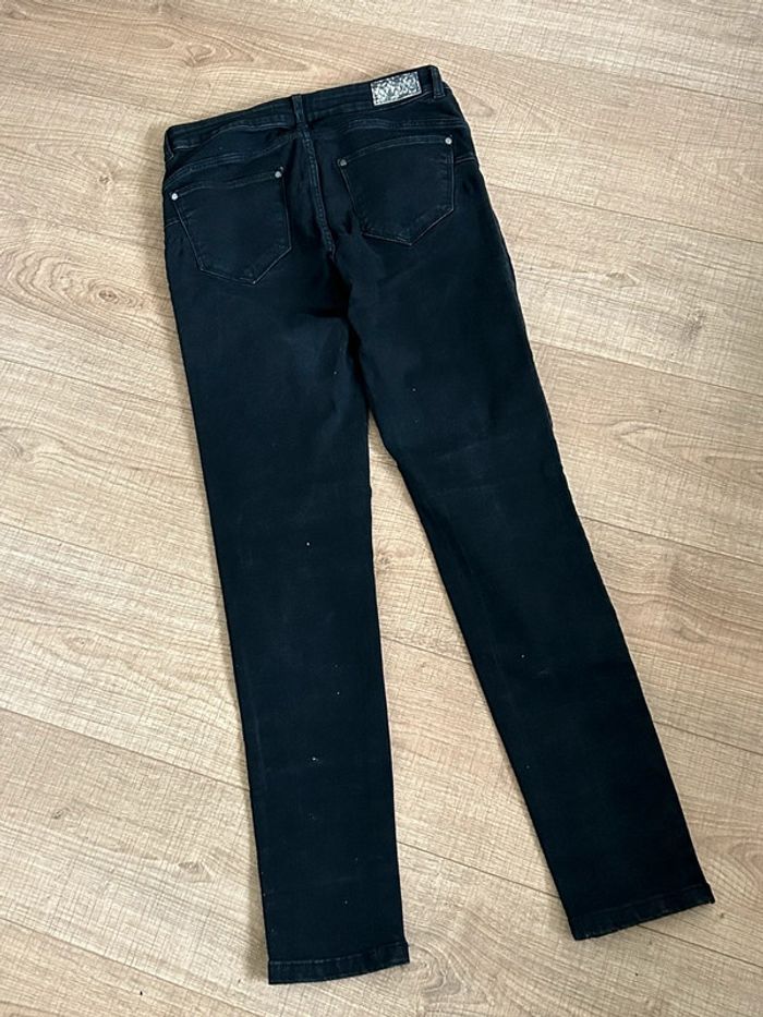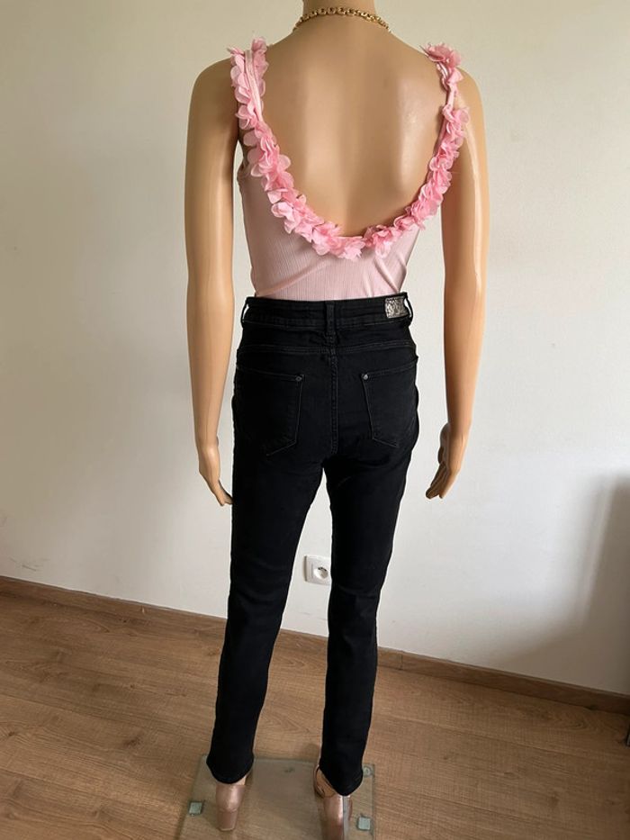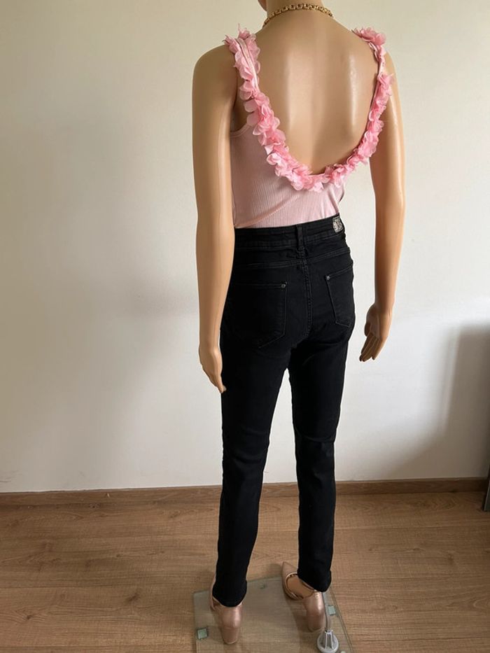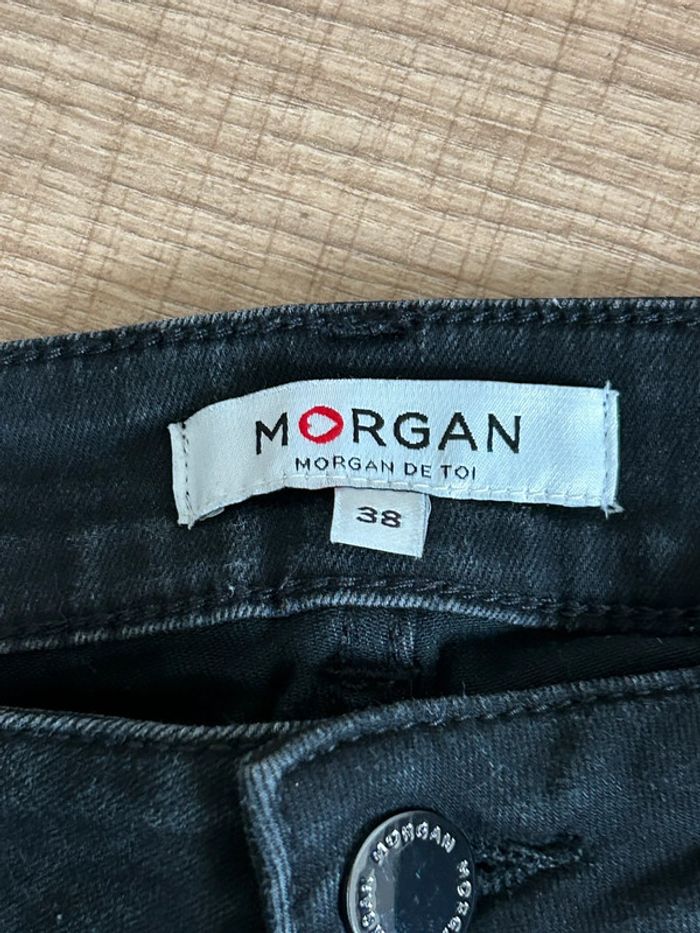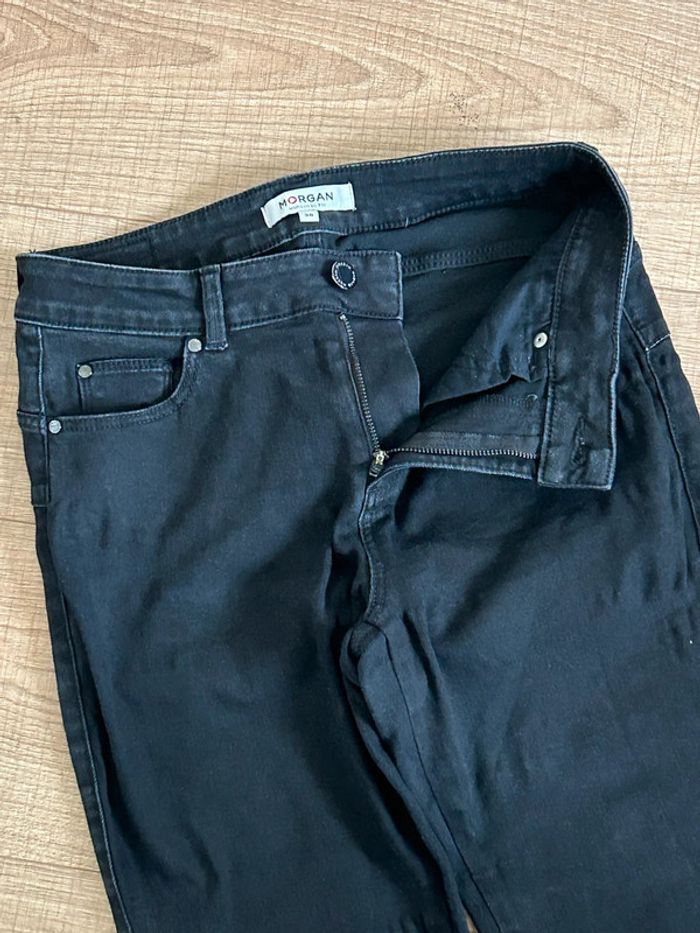 Joli jean noir pour femme, de marque Morgan. Taille 38. Porté quelques fois, en très bon état. taille 36 cms à 41 cms longueur 101 cms longueur entrejambes 77 cms Le tissu est extensible Étiquette intérieure de composition coupée. Le prix reste négociable dans la limite du raisonnable. Un petit cadeau dans le colis 🌸