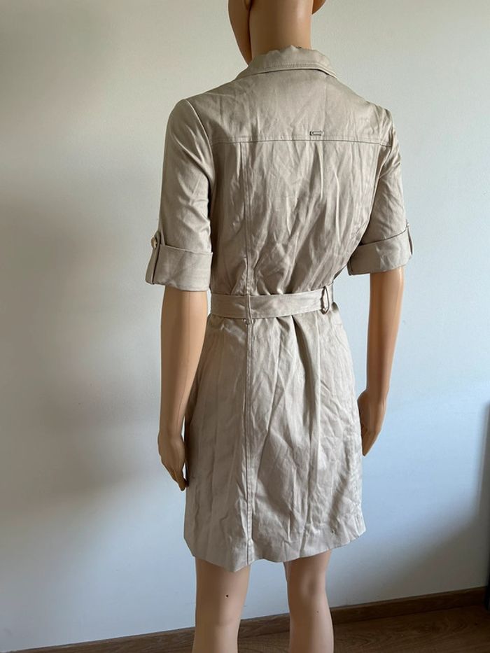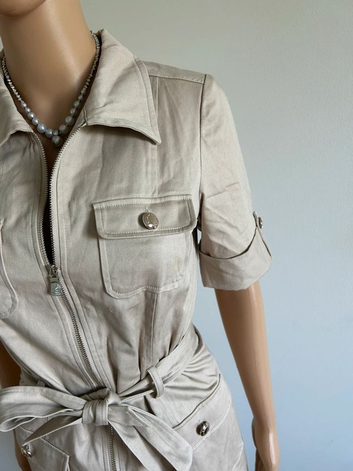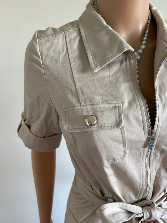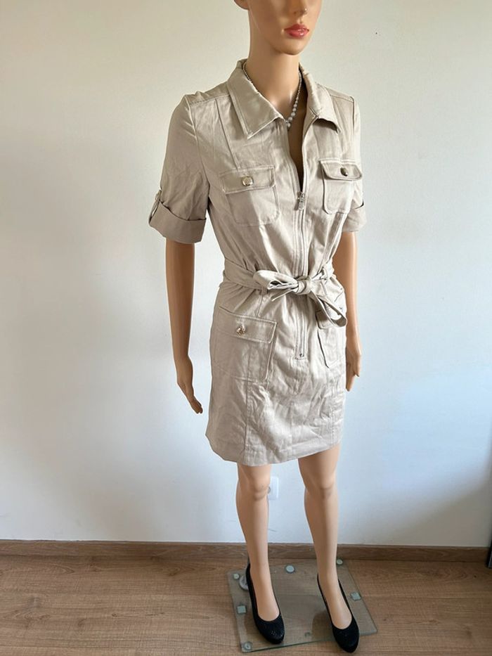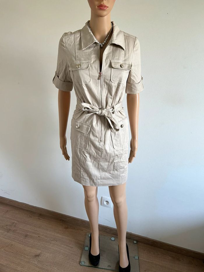 Magnifique robe beige à manches courtes, de marque Morgan. Fermeture et ceinture sur le devant. Taille 38. Elle est neuve avec étiquette (valeur 75€). aisselle à aisselle 44 cms épaule à épaule 38 cms taille 38 cms longueur depuis épaule 87 cms 97% coton et 3% elasthanne Le prix reste négociable dans la limite du raisonnable. Un petit cadeau dans le colis 🌸 (Boîte 26)