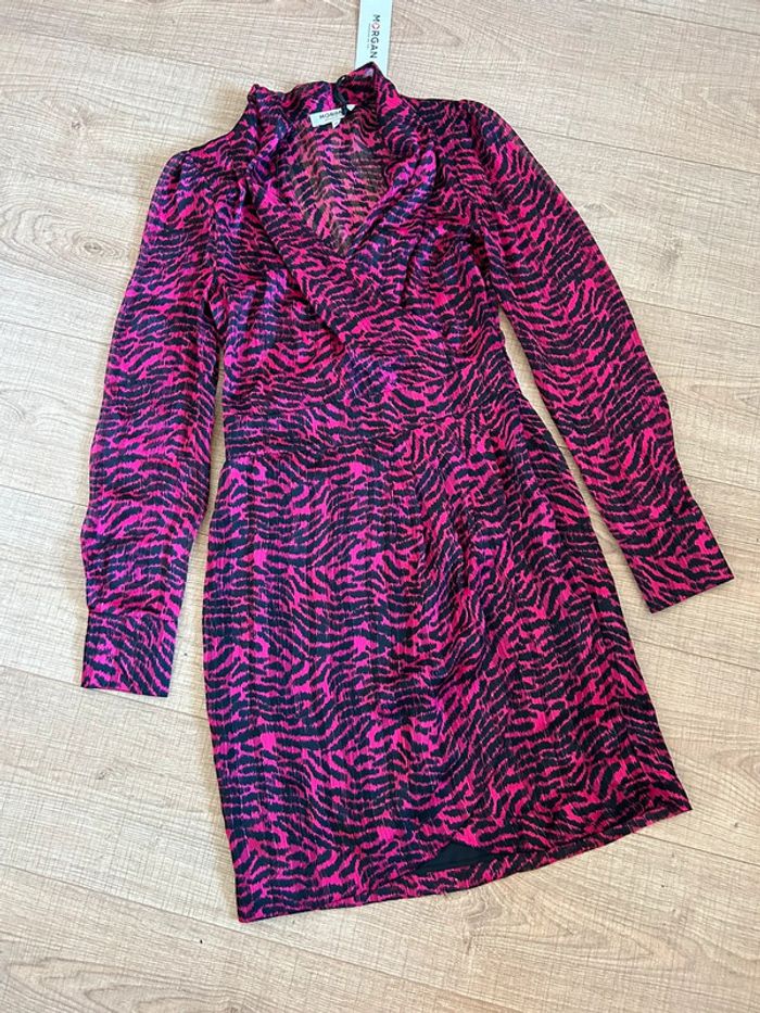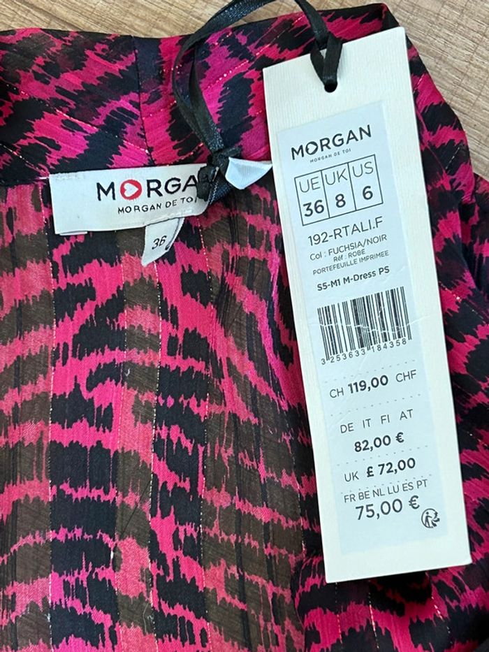 Robe rose et noire neuve à manches longues Morgan taille 36 (valeur 75€) - photo numéro 2
