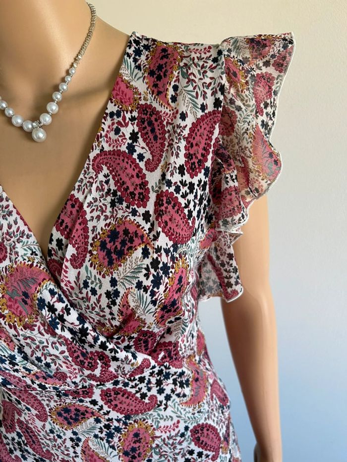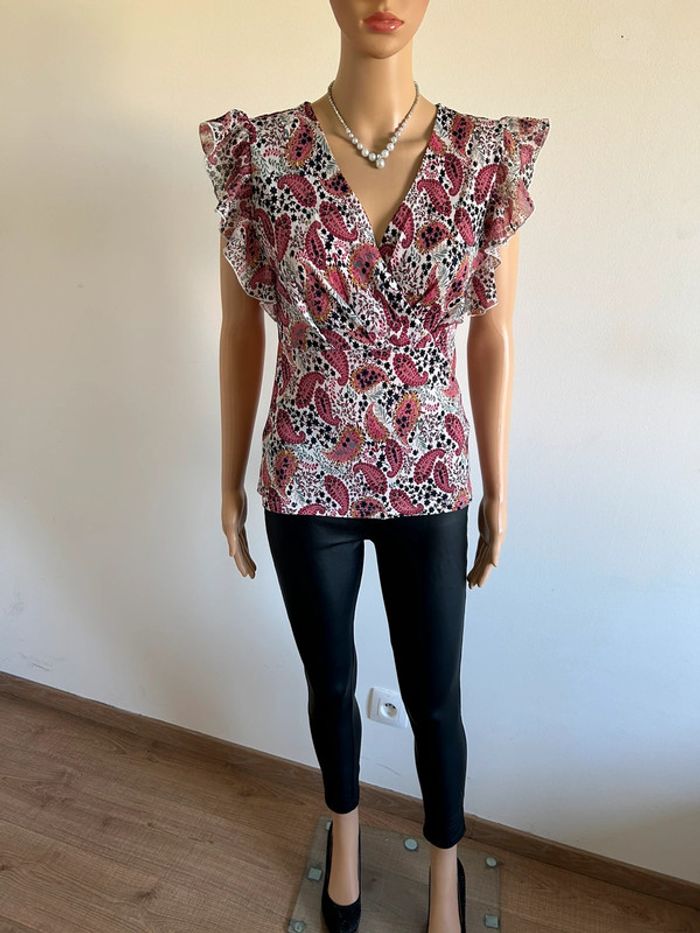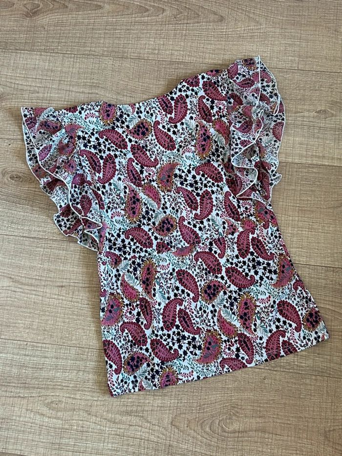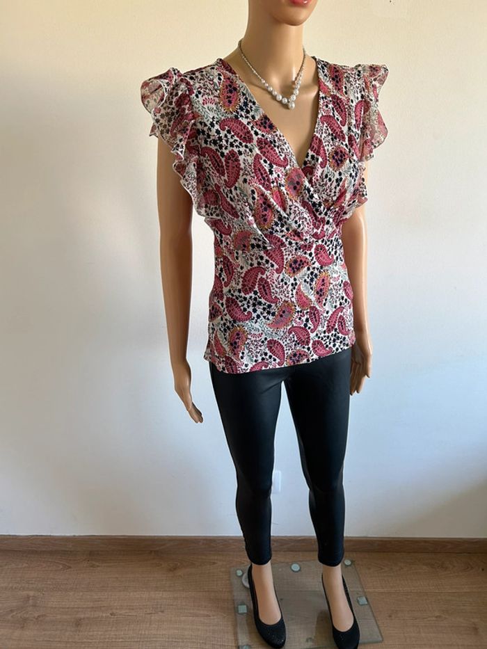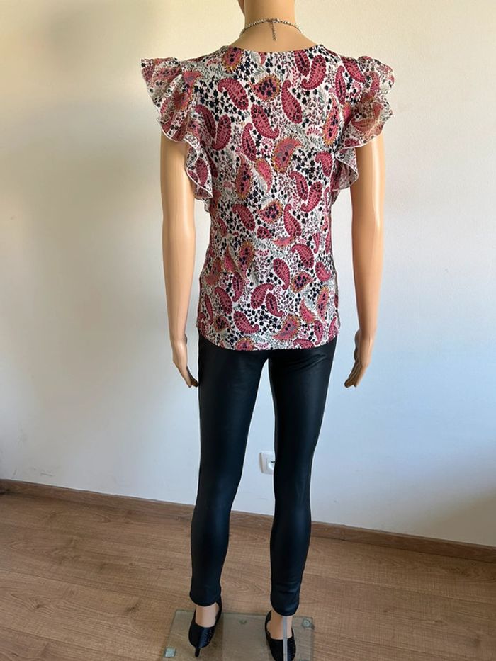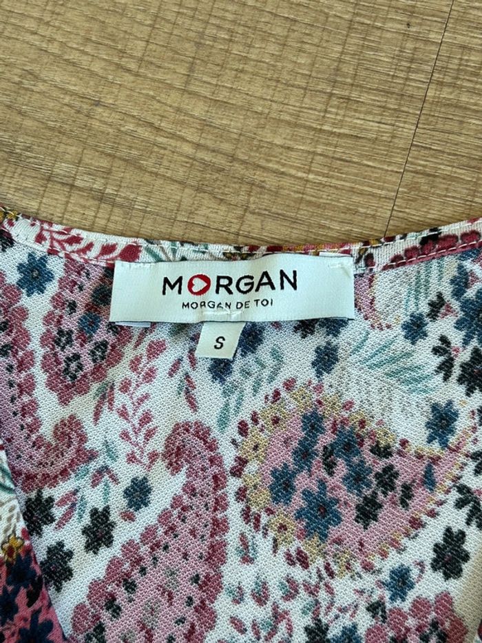 Magnifique blouse imprimée à manches courtes, de marque Morgan. Taille S. Jamais portée, état neuf. aisselle à aisselle 41 cms et plus épaule à épaule 35 cms et plus taille 36 cms et plus longueur depuis épaule 57 cms Le tissu est extensible Étiquette intérieure de composition coupée. Le prix reste négociable dans la limite du raisonnable. Un petit cadeau dans le colis 🌸 (Boîte 3)
