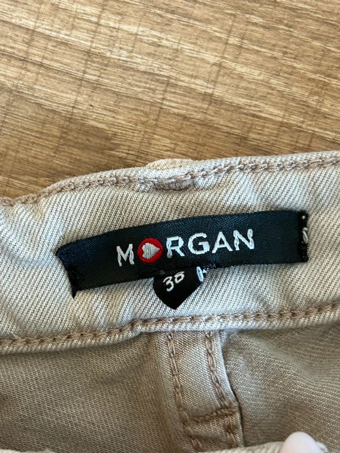 Joli pantalon beige de marque Morgan. Taille 38. Porté plusieurs fois, en très bon état. taille 35 cms à 42 cms longueur 92 cms longueur entrejambes 69 cms Le tissu est extensible 61% viscose, 37% coton et 2% elasthanne Le prix reste négociable dans la limite du raisonnable. Un petit cadeau dans le colis 🌸