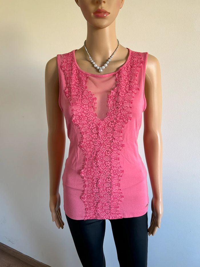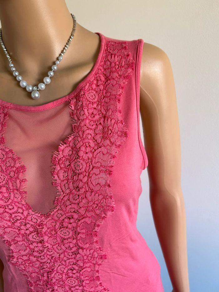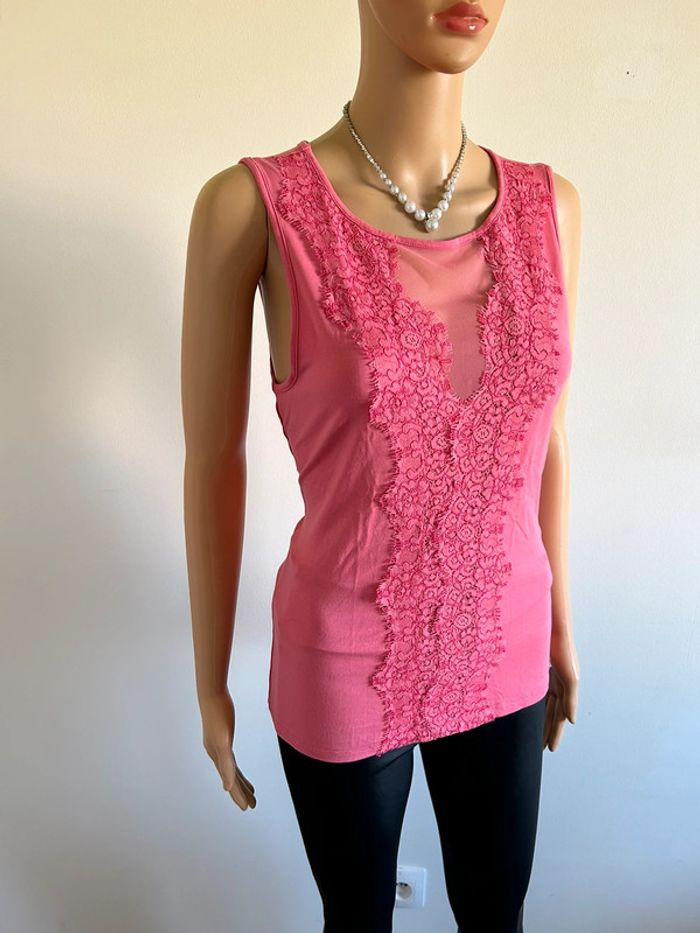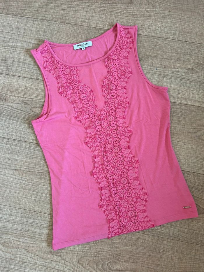 Joli débardeur rose avec dentelle, de marque Morgan. Taille M. Jamais porté, état neuf. aisselle à aisselle 43 cms et plus taille 37 cms et plus longueur depuis épaule 59 cms Le tissu est extensible Étiquette intérieure de composition coupée. Le prix reste négociable dans la limite du raisonnable. Un petit cadeau dans le colis 🌸 (Boîte 3)