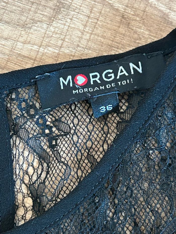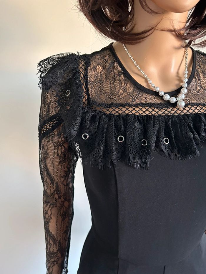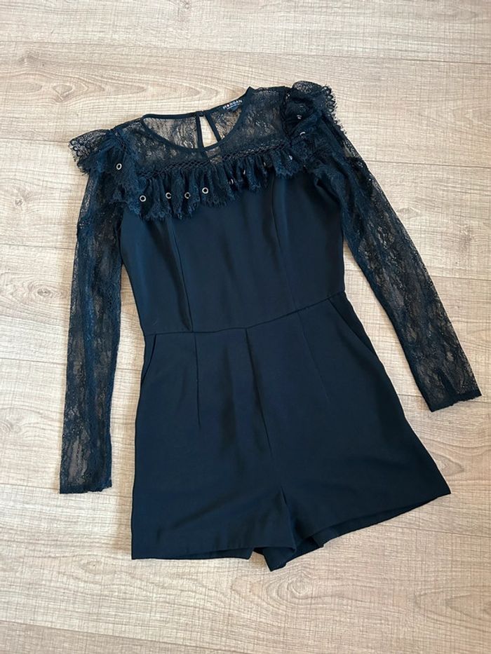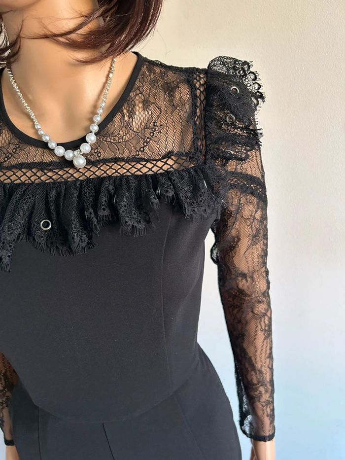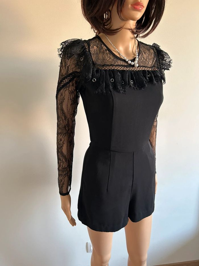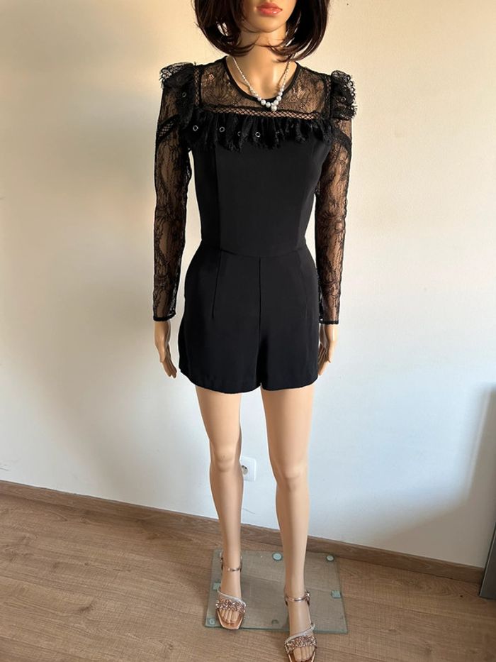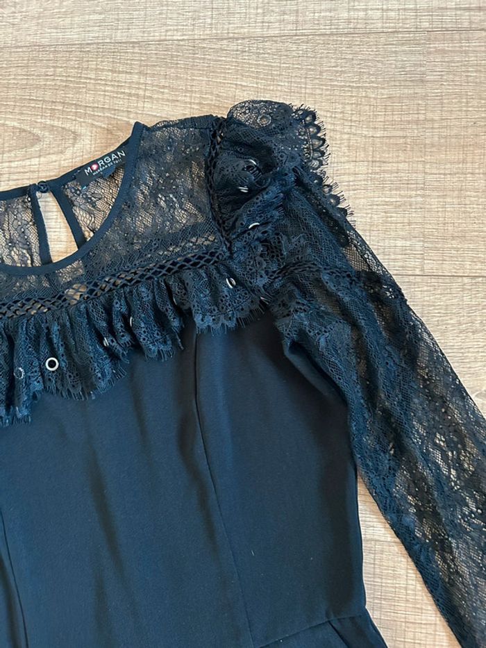 Magnifique combishort noir à manches longues, avec dentelle, de marque Morgan.