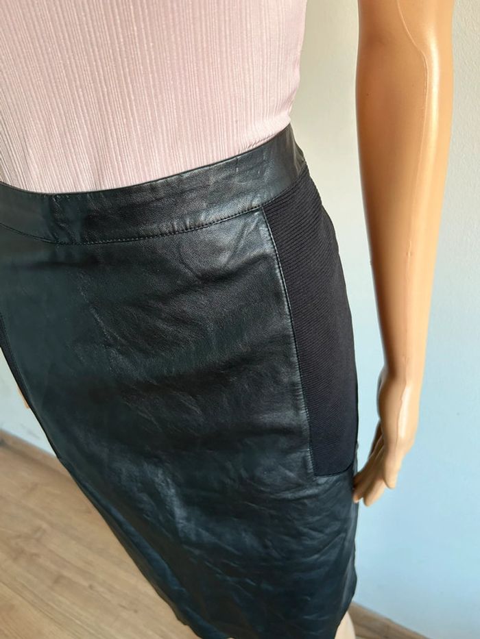 Jupe noire mi longue avec similicuir Morgan taille 38 bon état - photo numéro 5