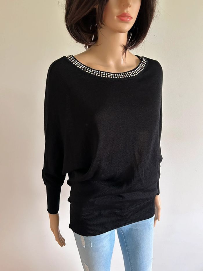 Pull noir avec strass Morgan taille S jamais porté - photo numéro 1