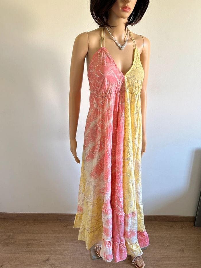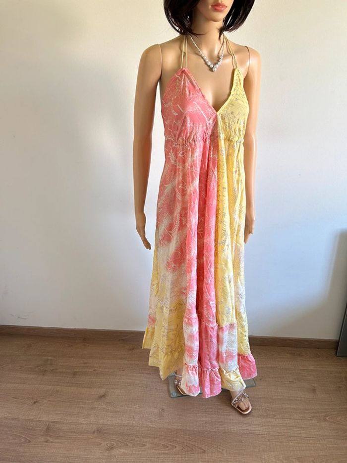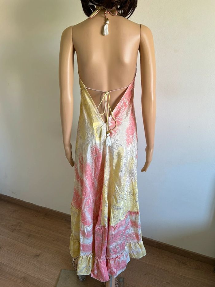 Robe longue neuve en soie avec dos nu Manaar taille unique - photo numéro 1