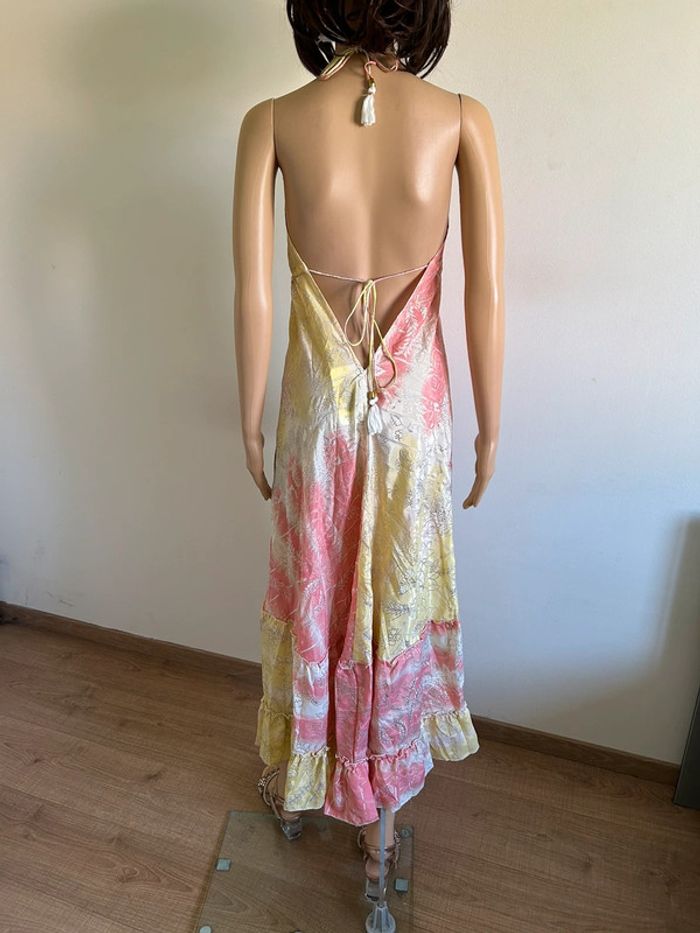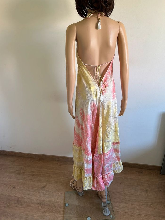 Robe longue neuve en soie avec dos nu Manaar taille unique - photo numéro 14