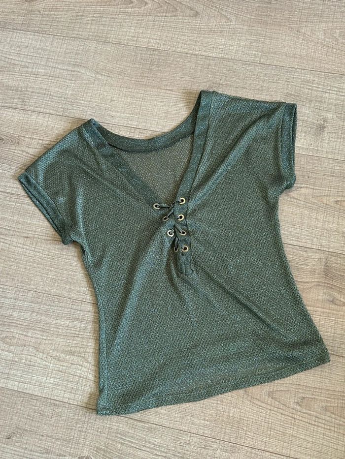 Haut vert pailleté à manches courtes Morgan taille XS jamais porté - photo numéro 3