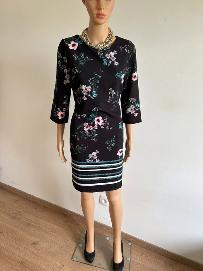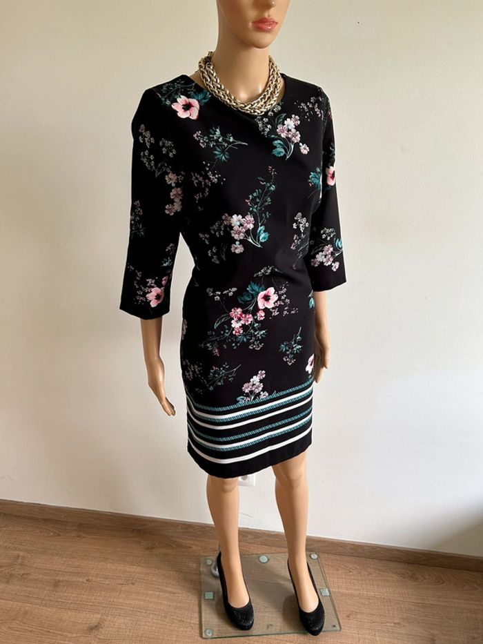 Jolie robe noire et fleurie avec manches 3/4, de marque LolaLiza. Fermeture sur le côté. Taille française 40. Jamais portée, état neuf. aisselle a aisselle 47 cms épaule à épaule 38 cms taille 42 cms longueur depuis épaule 90 cms 95% polyester et 5% elasthanne Le prix reste négociable dans la limite du raisonnable. Un petit cadeau dans le colis 🌸 (Boîte 48)
