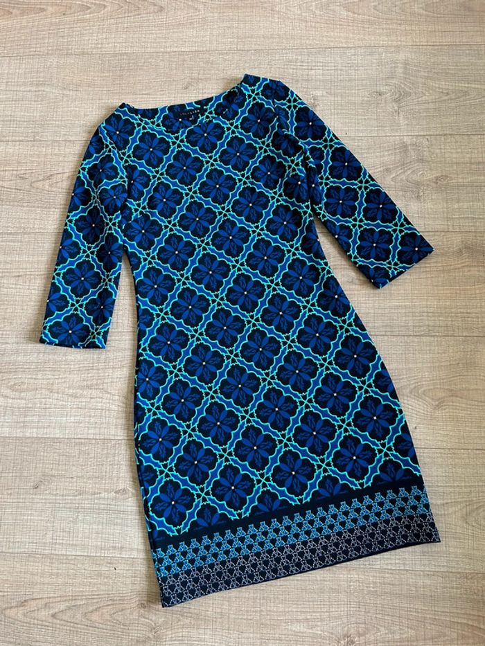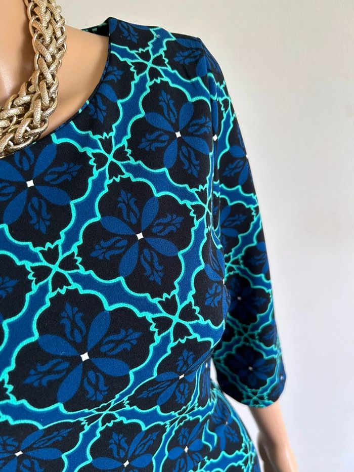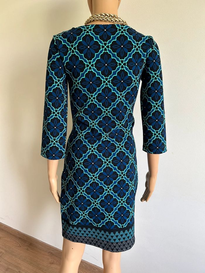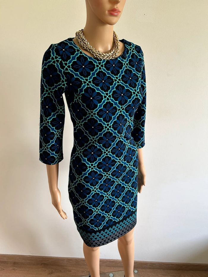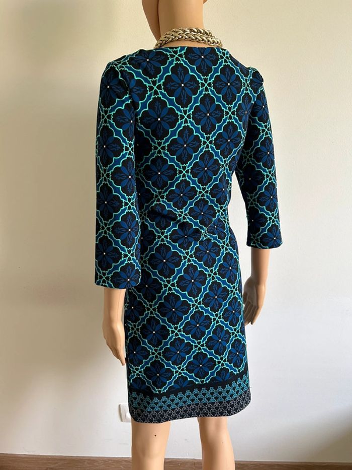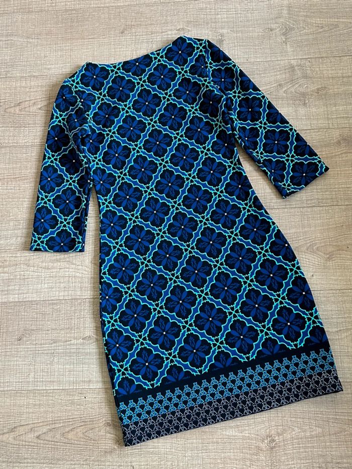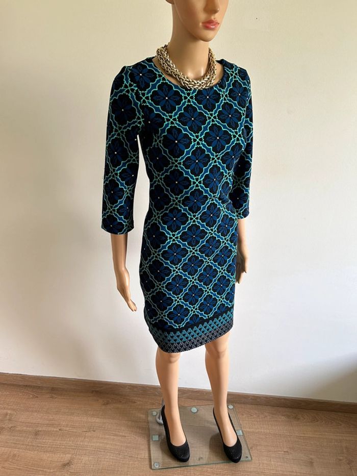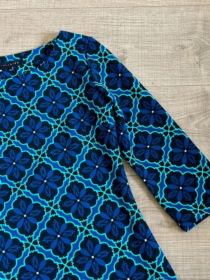 Magnifique robe bleue marine et turquoise, avec manches 3/4, de marque LolaLiza. Taille française 36. Jamais portée, état neuf. aisselle a aisselle 40 cms et plus épaule a épaule 36 cms et plus taille 36 cms et plus longueur depuis épaule 90 cms Le tissu est extensible 95% polyester et 5% elasthanne Le prix reste négociable dans la limite du raisonnable. Un petit cadeau dans le colis 🌸 (Boîte 34)