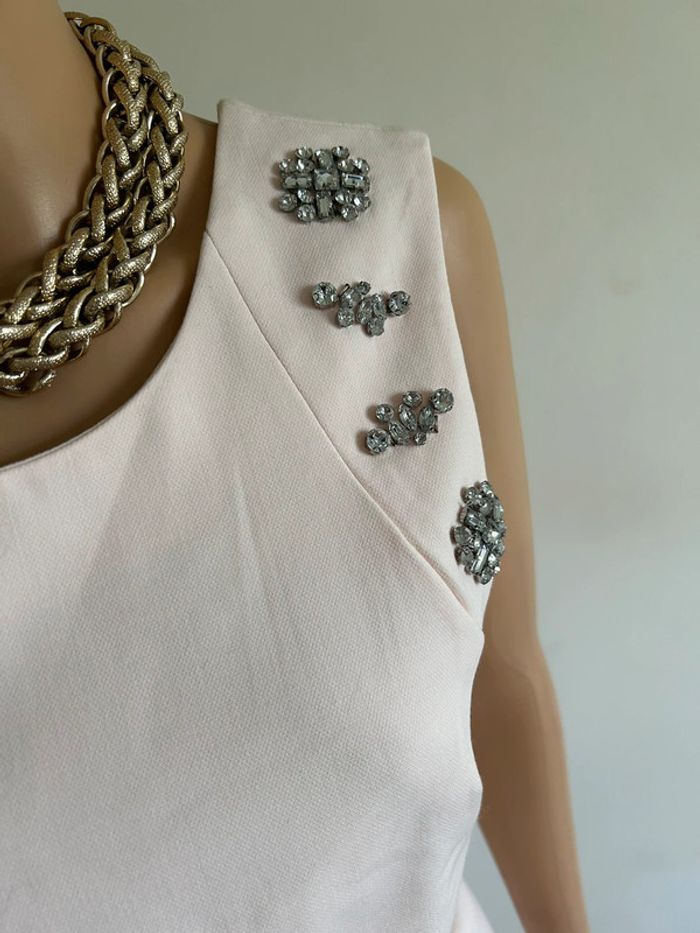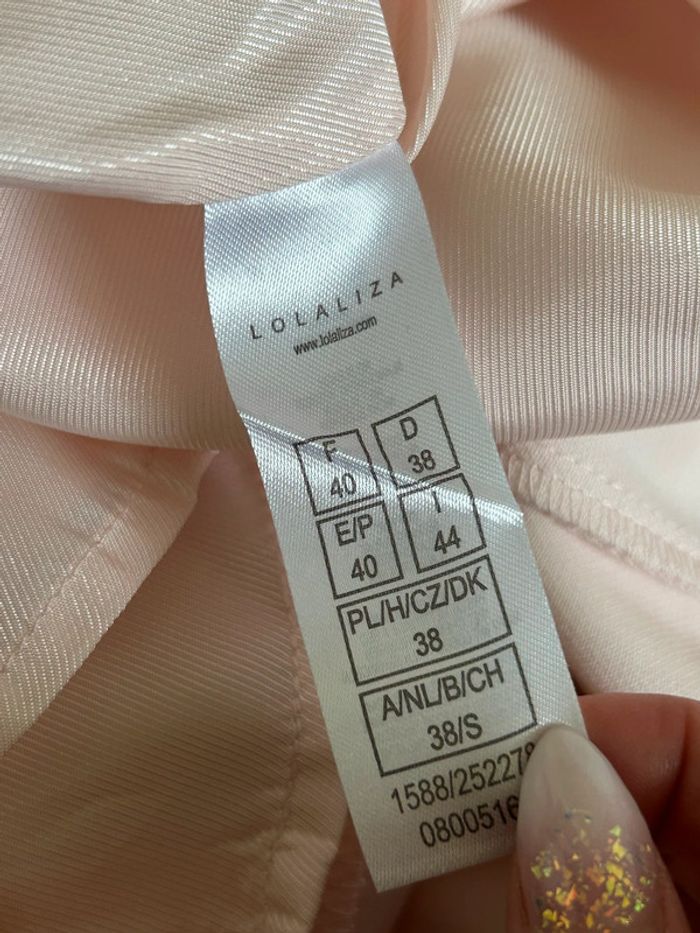 Magnifique robe rose claire sans manches, avec strass argentés, de marque LolaLiza. Fermeture dans le dos. Taille française 40. Jamais portée, état neuf. aisselle à aisselle 45 cms taille 42 cms longueur depuis épaule 91 cms 95% polyester et 5% elasthanne Le prix reste négociable dans la limite du raisonnable. Un petit cadeau dans le colis 🌸