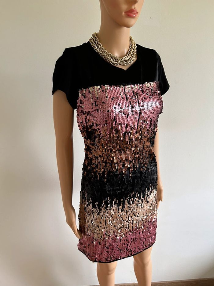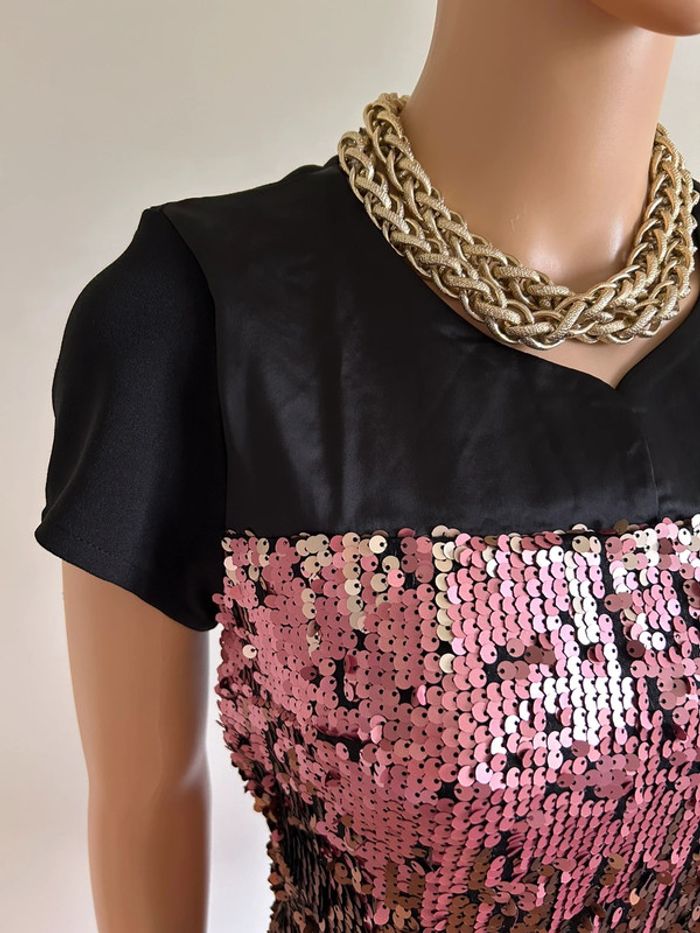 Robe noire à manches courtes avec sequins Jus d’Orange taille 1 jamais portée