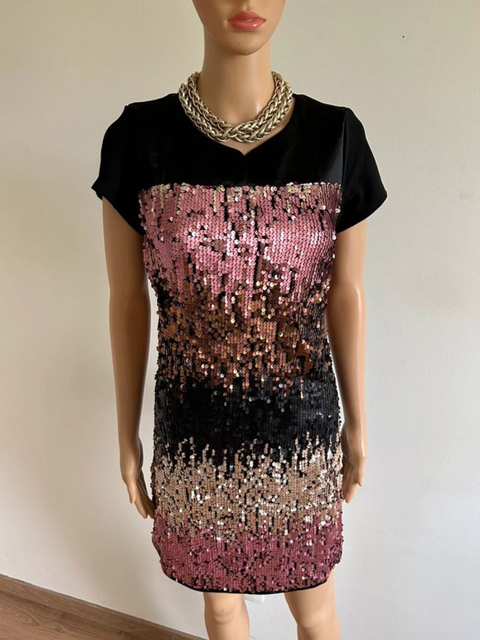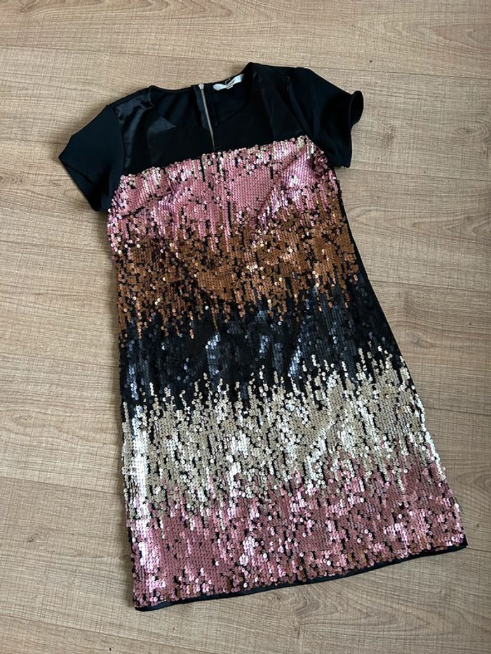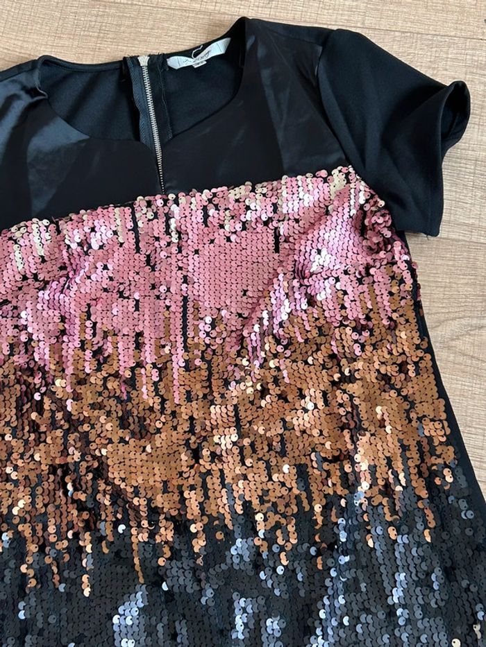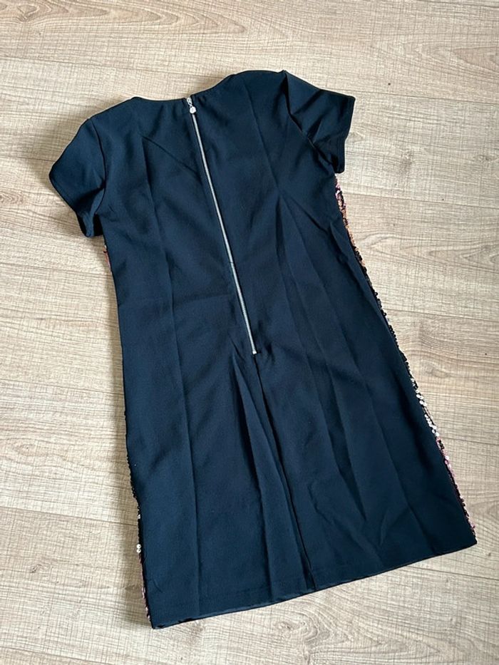 Magnifique robe noire à manches courtes, avec sequins multicolores sur le devant, de marque Jus d’Orange. Fermeture dans le dos. Taille 1 qui correspond à du 36. Jamais portée, état neuf. aisselle à aisselle 43 cms épaule à épaule 36 cms taille 40 cms longueur depuis épaule 86 cms Le tissu est extensible 100% polyester Le prix reste négociable dans la limite du raisonnable. Un petit cadeau dans le colis 🌸 (Boîte 34)