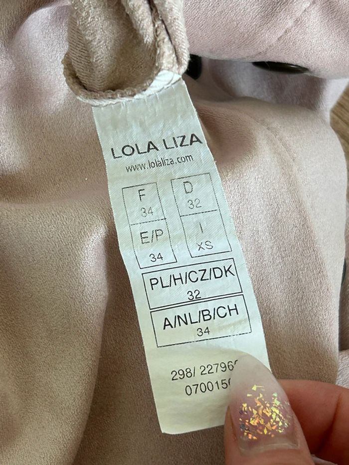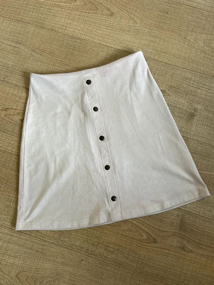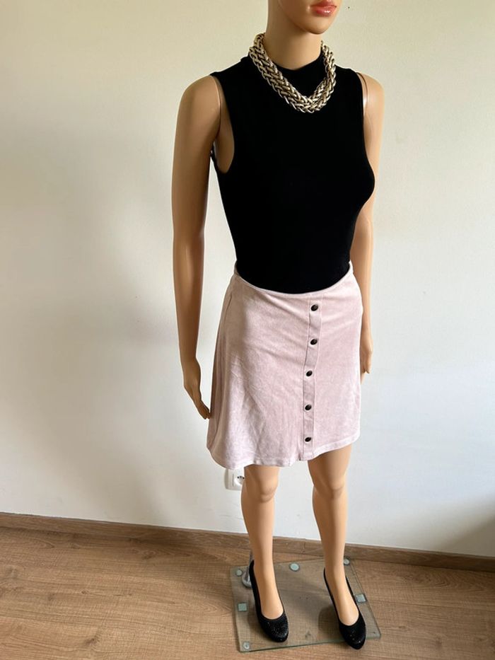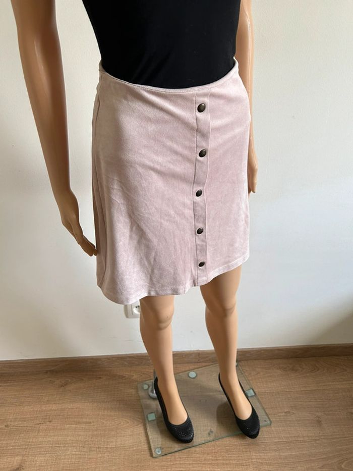 Jolie jupe beige rose claire en suédine, de marque LolaLiza. Fermeture à l’arrière. Taille 34. Jamais portée, état neuf. taille 34 cms longueur 43 cms 89% polyester et 11% elasthanne Le prix reste négociable dans la limite du raisonnable. Un petit cadeau dans le colis 🌸