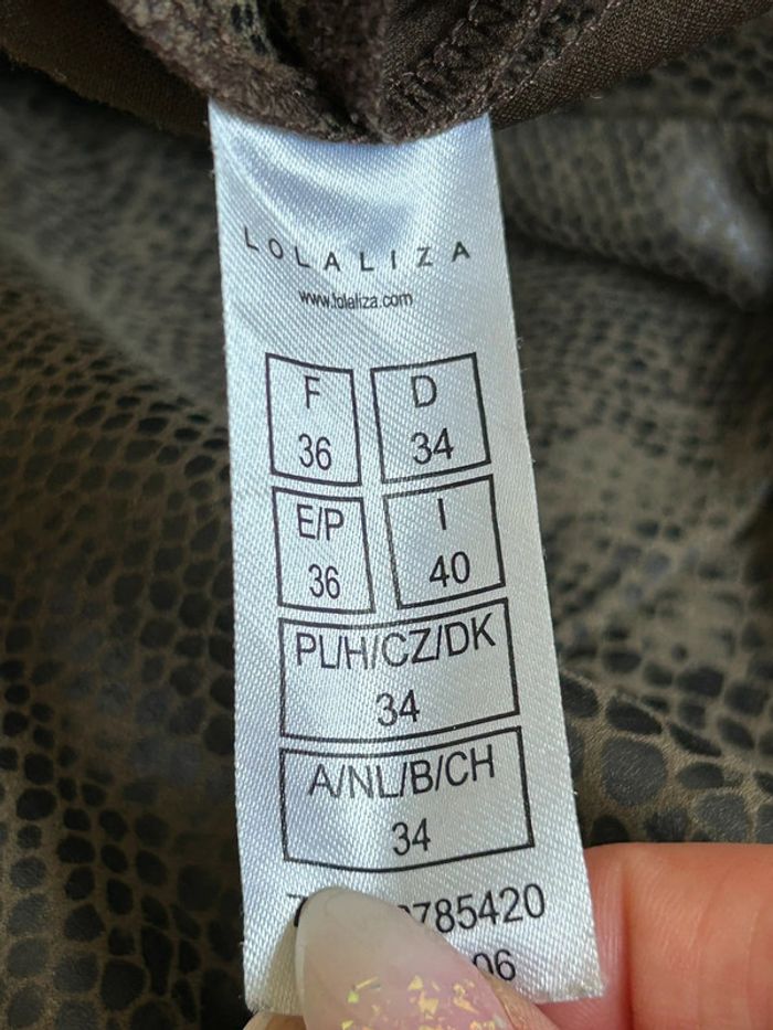 Jolie jupe imprimée python, de marque LolaLiza. Fermeture sur le côté. Taille française 36. Jamais portée, état neuf. taille 35 cms longueur 42 cms 92% polyester et 8% elasthanne Le prix reste négociable dans la limite du raisonnable. Un petit cadeau dans le colis 🌸