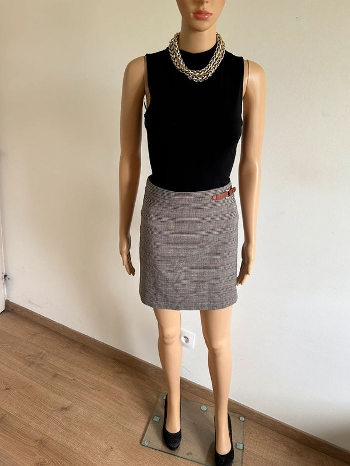 Jolie jupe à carreaux de marque Morgan. Fermeture à l’arrière. Taille 38. Peu portée, en bon état : présente un défaut sur la partie en cuir du devant, la couleur marron est un peu effacée par endroit. taille 38 cms longueur 42 cms 64% polyester, 34% viscose et 2% elasthanne Le prix reste négociable dans la limite du raisonnable. Un petit cadeau dans le colis 🌸