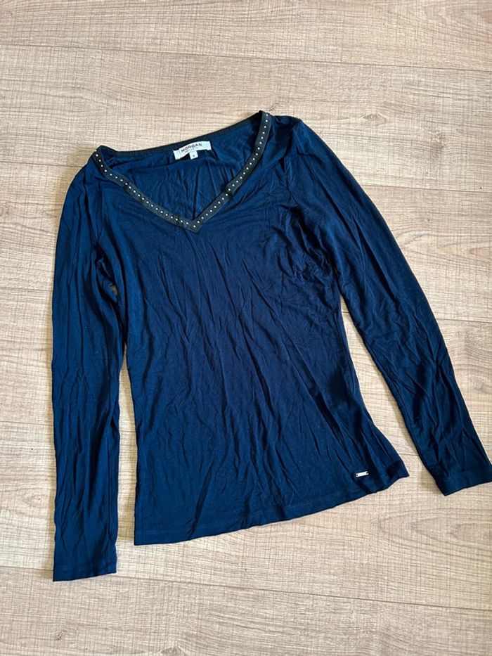 Haut bleu marine à manches longues Morgan taille S jamais porté - photo numéro 1