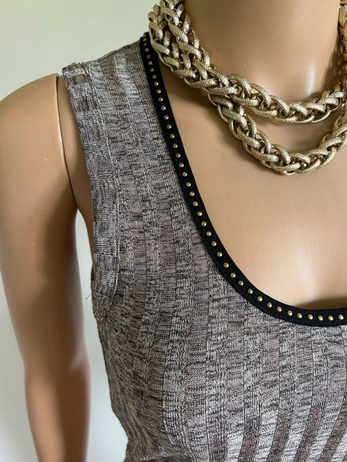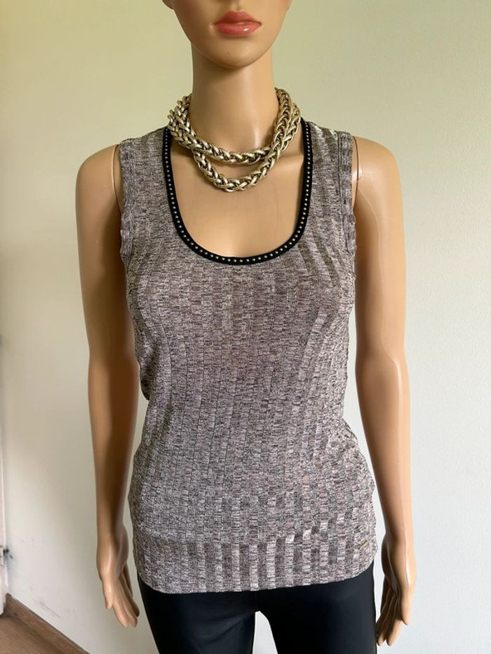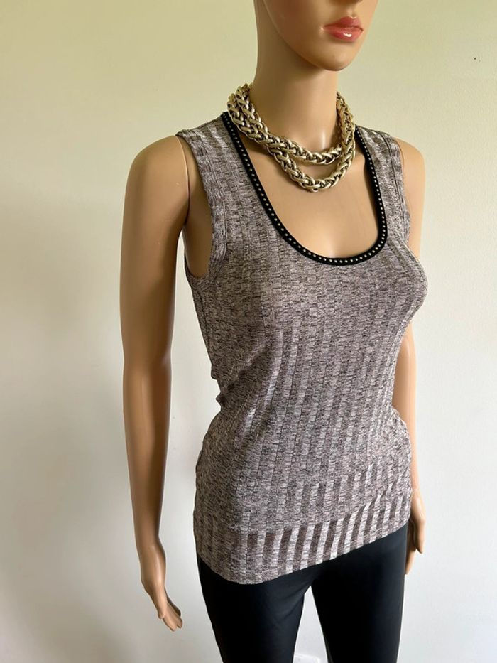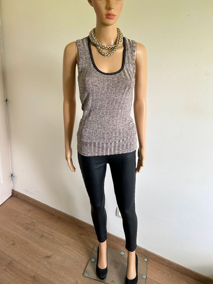 Joli débardeur gris sans manches, de marque Morgan. Taille S. Jamais porté, état neuf. aisselle à aisselle 35 cms à 43 cms taille 34 cms à 42 cms longueur depuis épaule 60 cms Le tissu est extensible Étiquette intérieure de composition coupée Le prix reste négociable dans la limite du raisonnable. Un petit cadeau dans le colis 🌸 (Boîte 2)