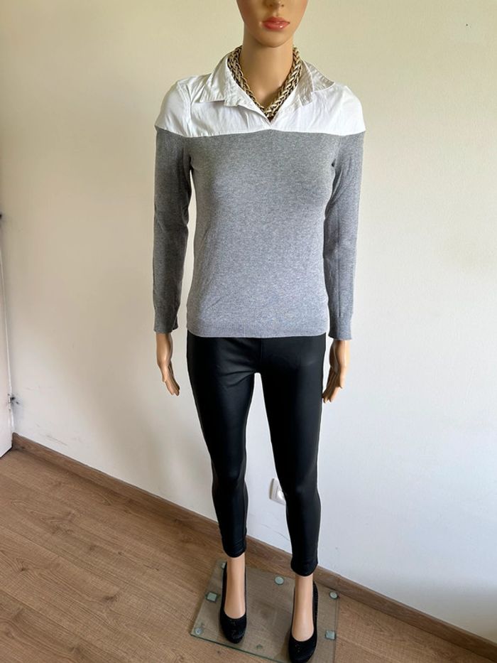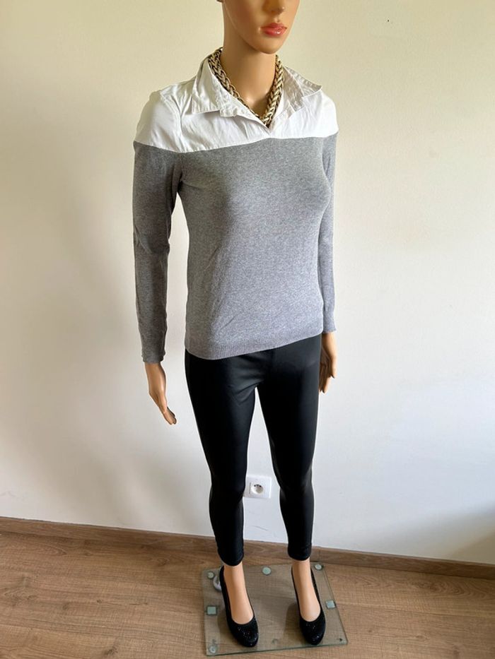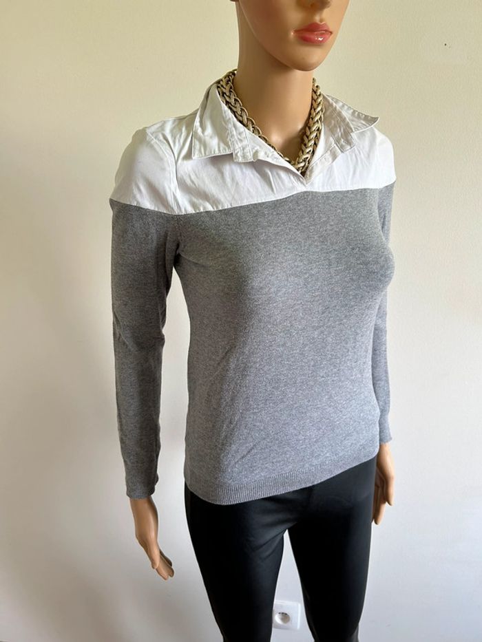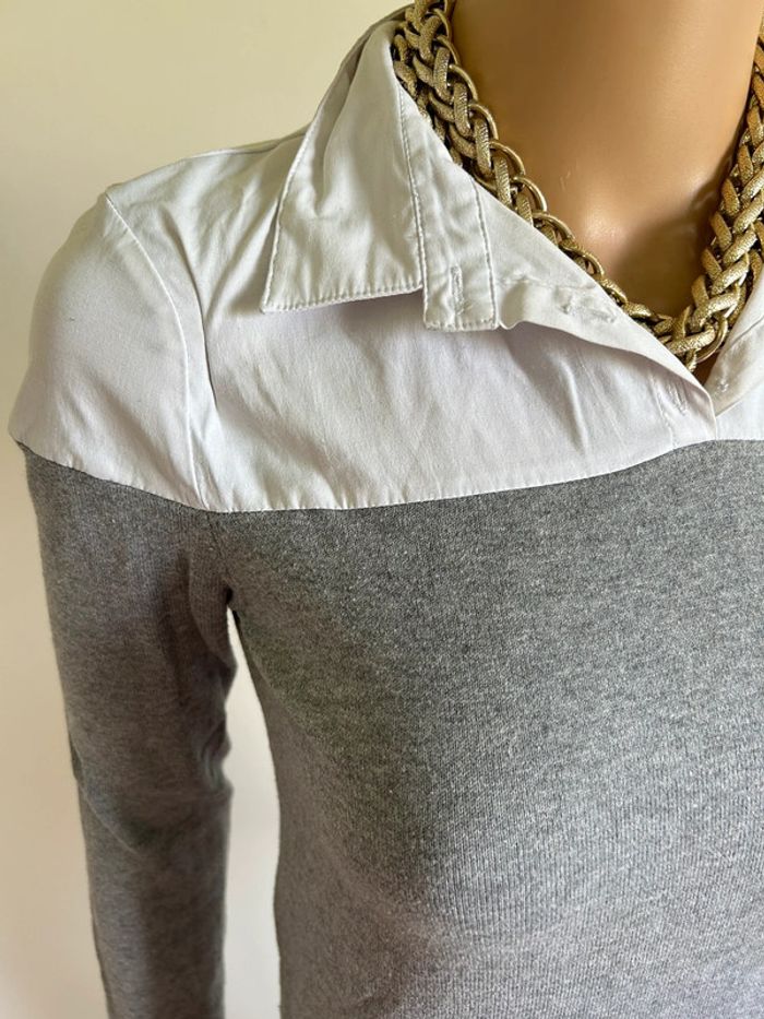 Pull chemise gris et blanc Morgan taille XS bon état - photo numéro 5