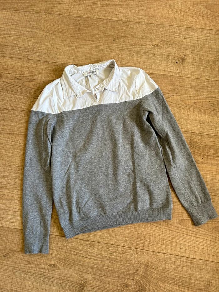 Pull chemise gris et blanc Morgan taille XS bon état - photo numéro 6