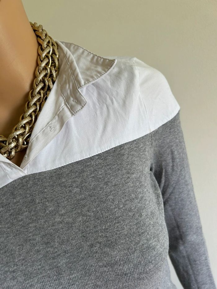 Pull chemise gris et blanc Morgan taille XS bon état - photo numéro 8