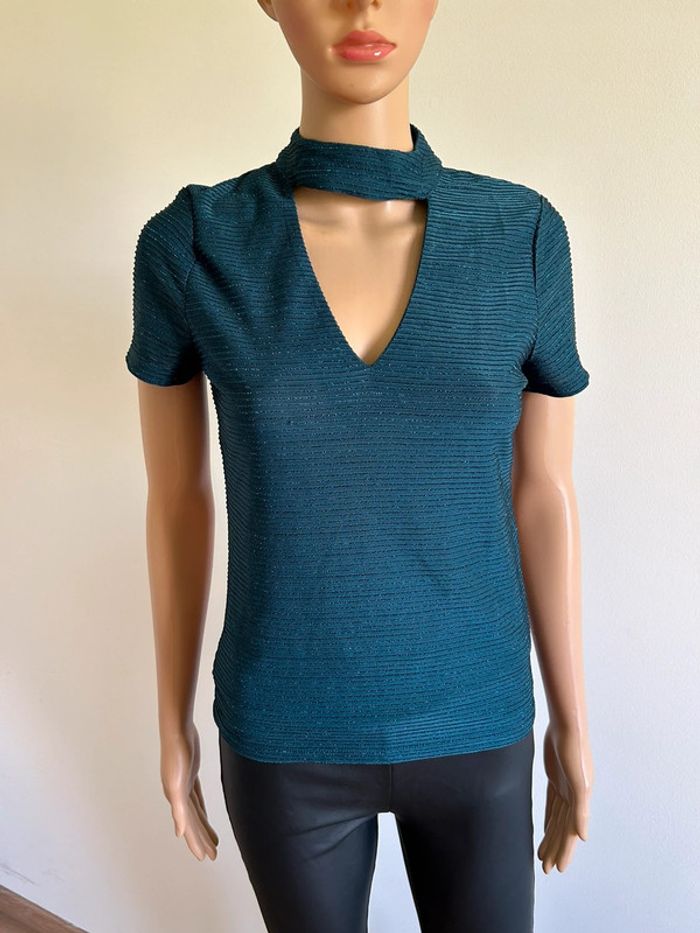 Blouse bleue brillante à manches courtes Morgan taille S jamais portée - photo numéro 12