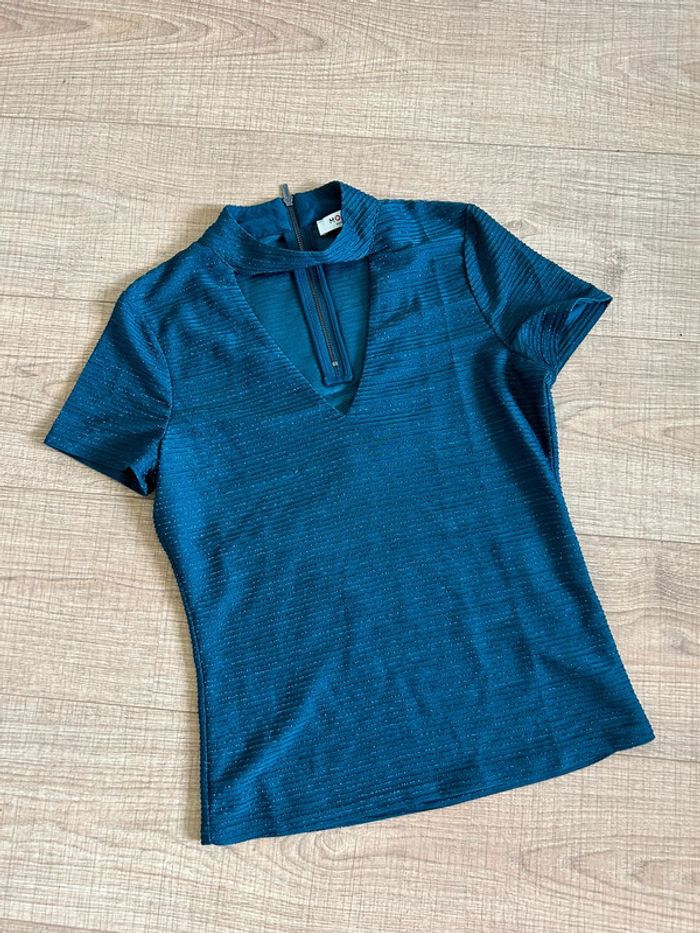Blouse bleue brillante à manches courtes Morgan taille S jamais portée - photo numéro 2