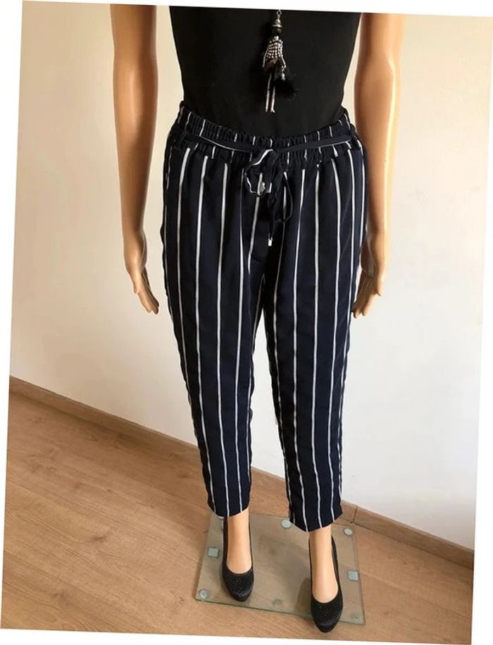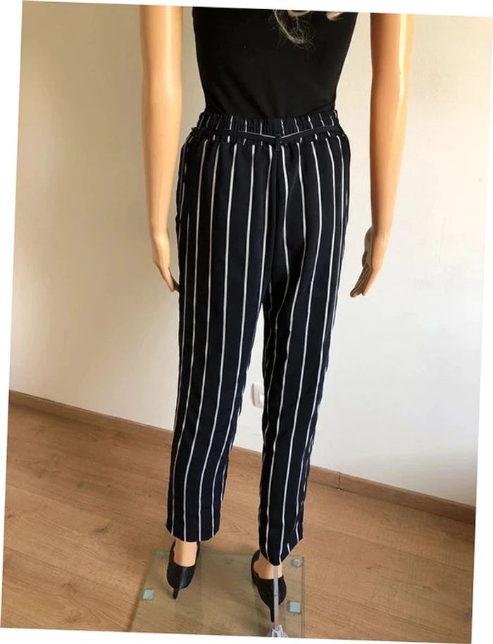Pantalon fluide bleu marine et blanc Mango taille S bon état - photo numéro 13