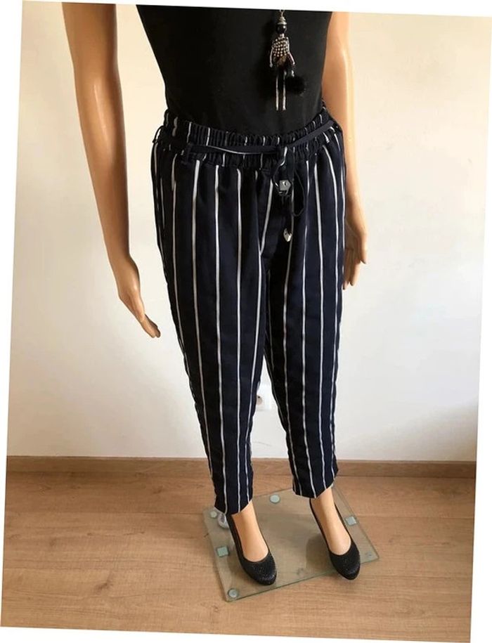 Pantalon fluide bleu marine et blanc Mango taille S bon état - photo numéro 1