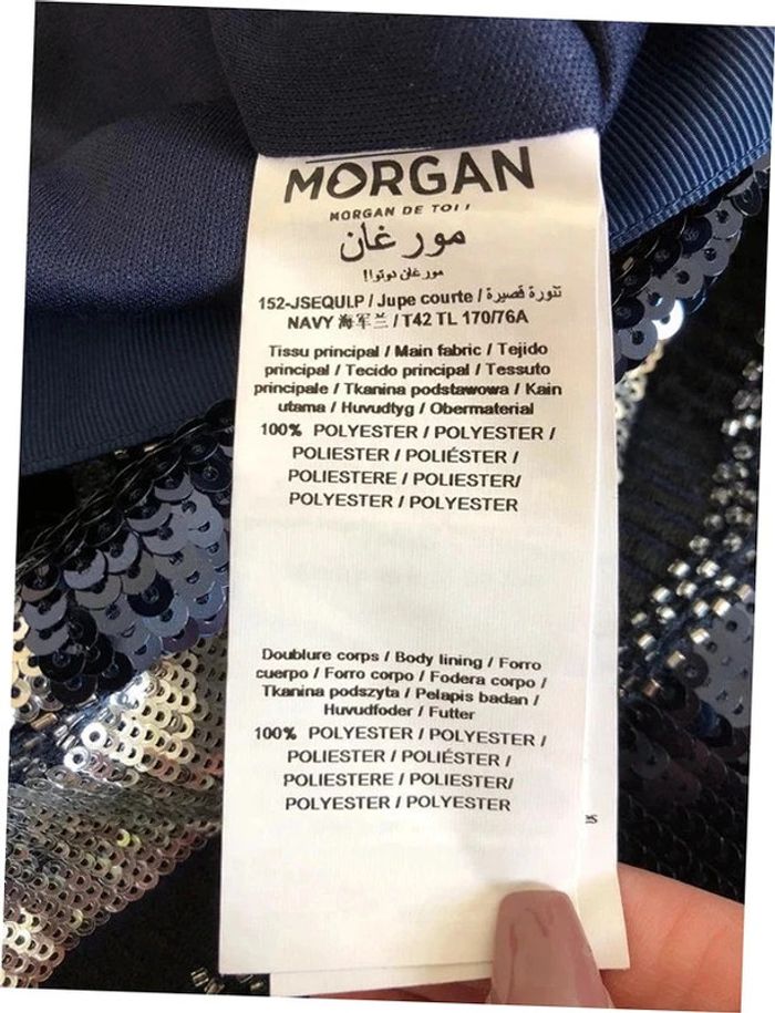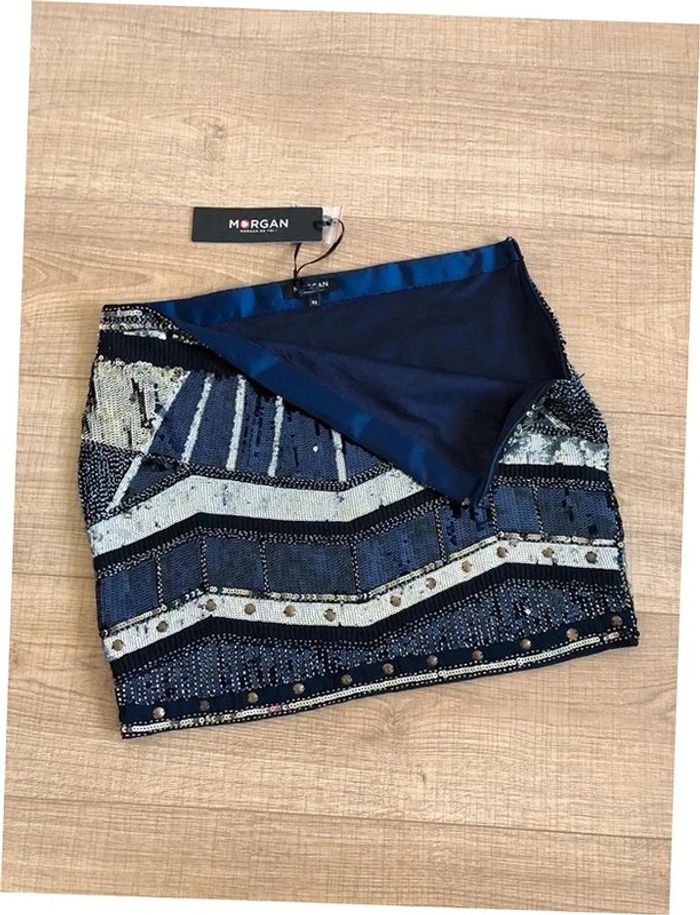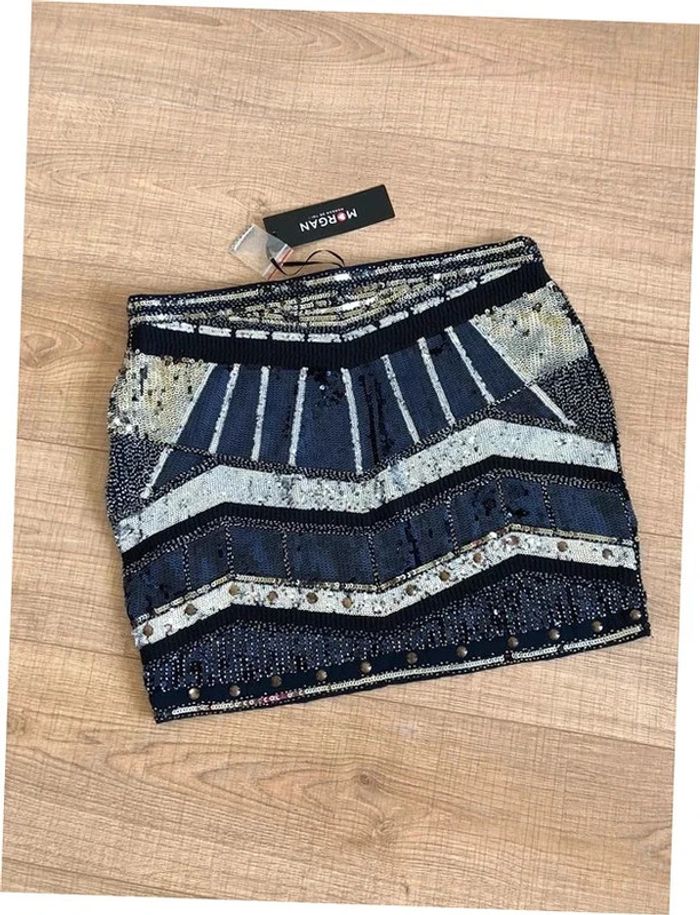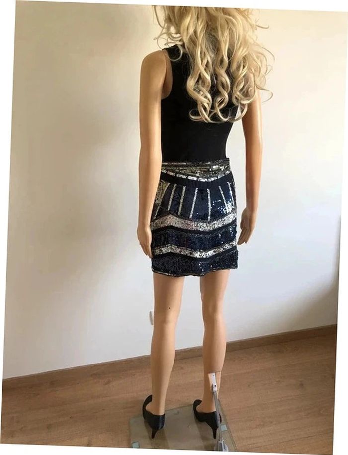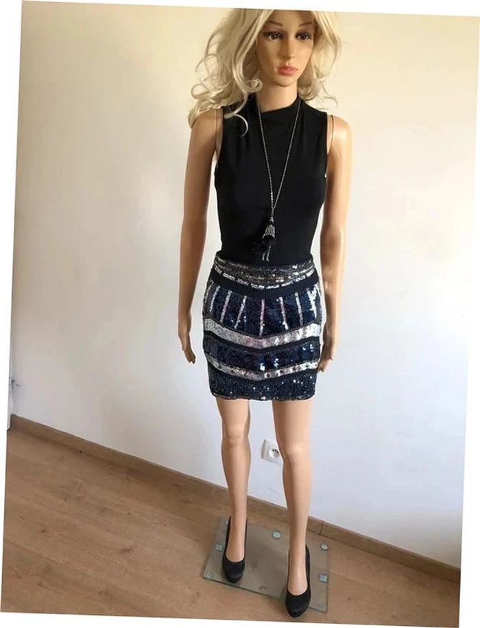 Magnifique jupe bleue marine et argentée entièrement en sequins, de marque Morgan.