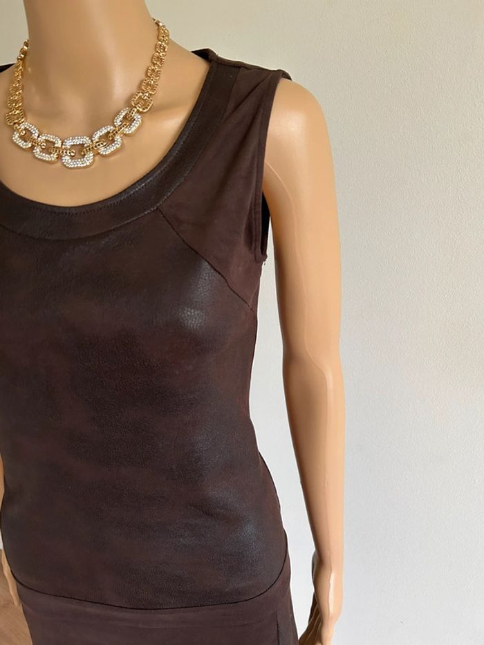 Robe marron en suédine sans manches Cache Cache taille 38 jamais portée - photo numéro 2