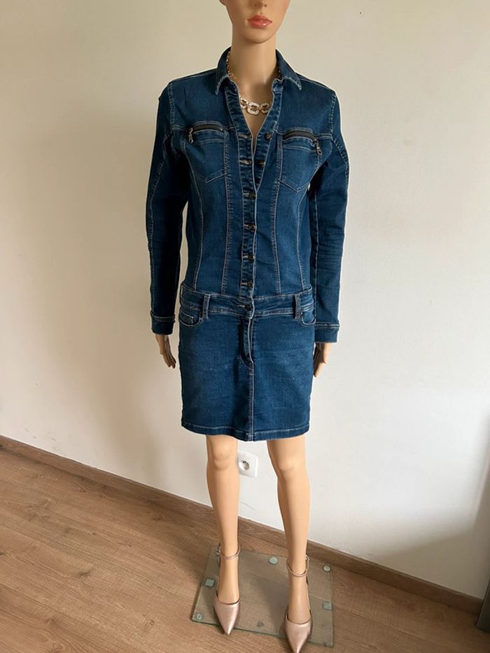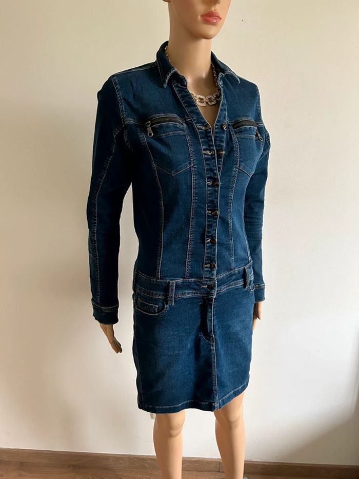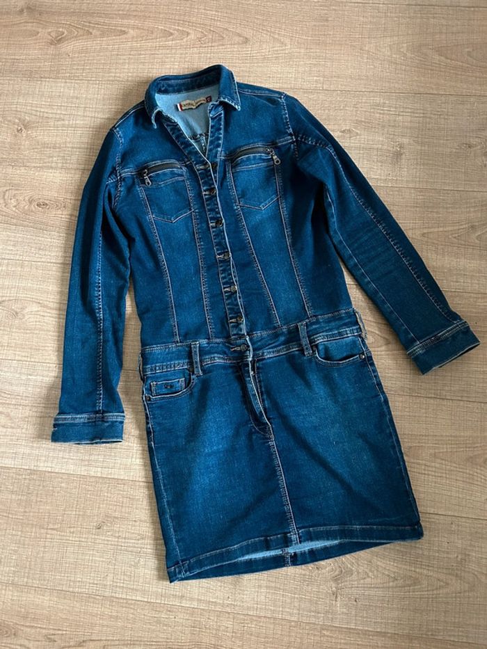 Magnifique robe bleue marine en jean, à manches longues, de marque Kaporal.