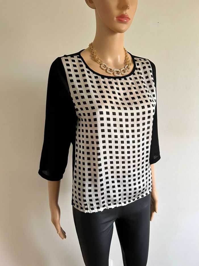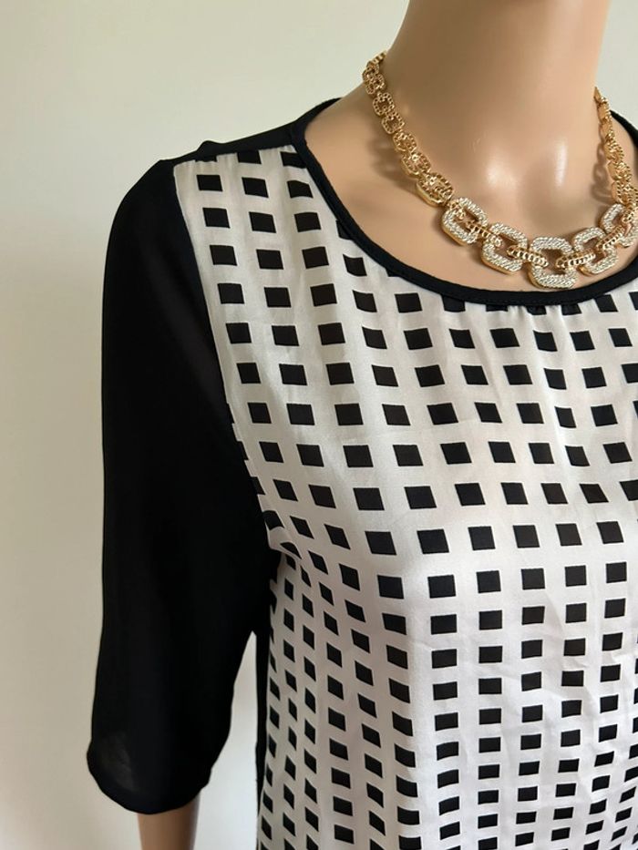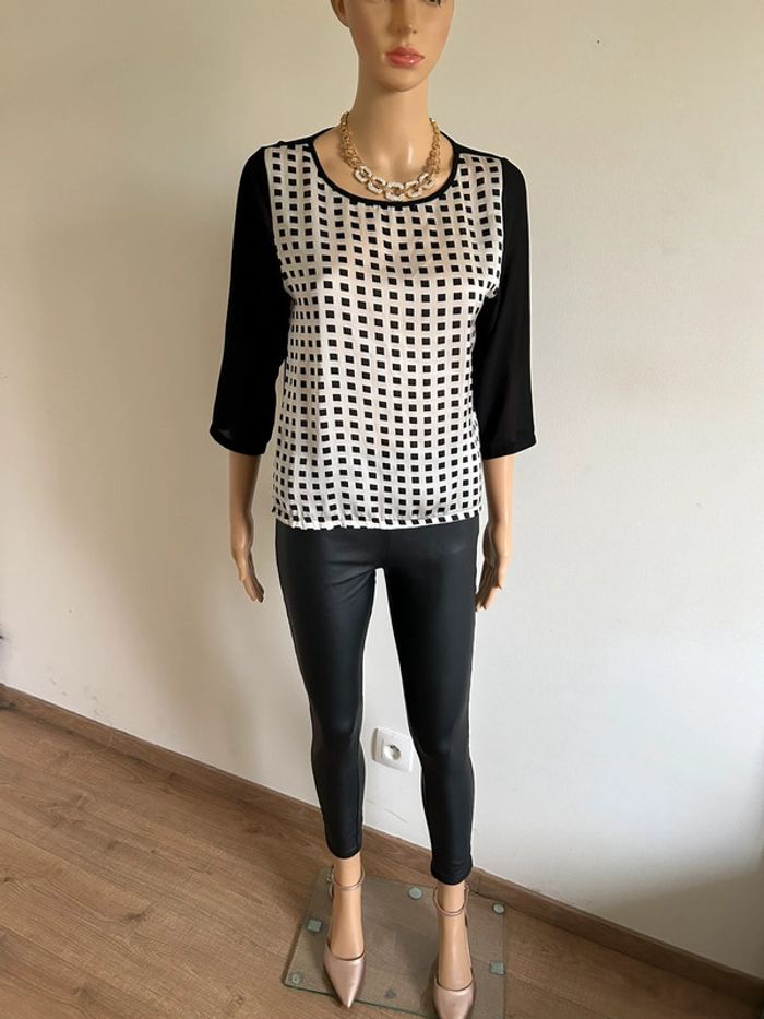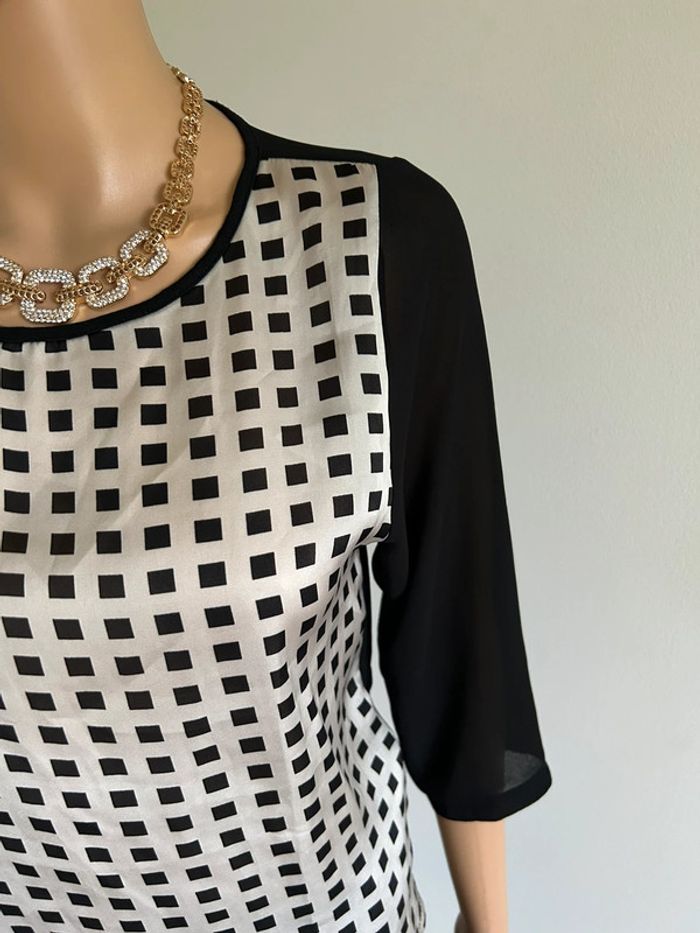 Magnifique blouse noire et blanche, avec manches 3/4, de marque la Fée Maraboutée. Taille 36. Jamais portée, état neuf. aisselle à aisselle 43 cms épaule à épaule 35 cms taille 42 cms longueur depuis épaule 54 cms à 63 cms 100% polyester Le prix reste négociable dans la limite du raisonnable. Un petit cadeau dans le colis 🌸 (Boîte 7)