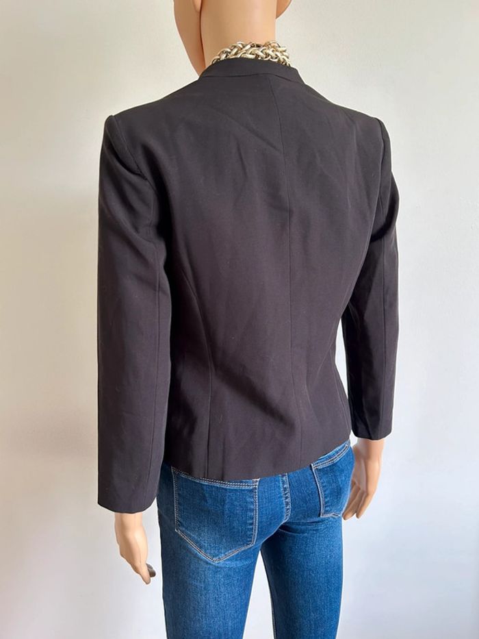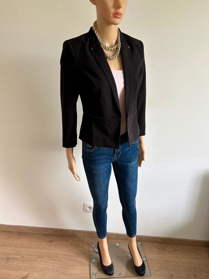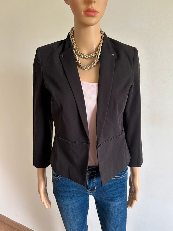 Joli blazer noir pour femme, de marque Grain de Malice. Taille 36. Jamais porté, état neuf. aisselle à aisselle 44 cms épaule à épaule 37 cms longueur manches 49 cms taille 39 cms longueur depuis épaule 52 cms 76% polyester, 18% viscose et 6% elasthanne Le prix reste négociable dans la limite du raisonnable. Un petit cadeau dans le colis 🌸