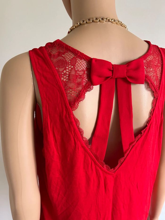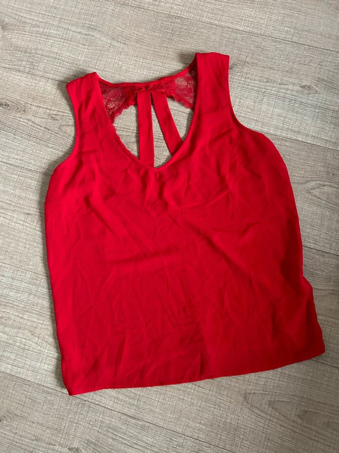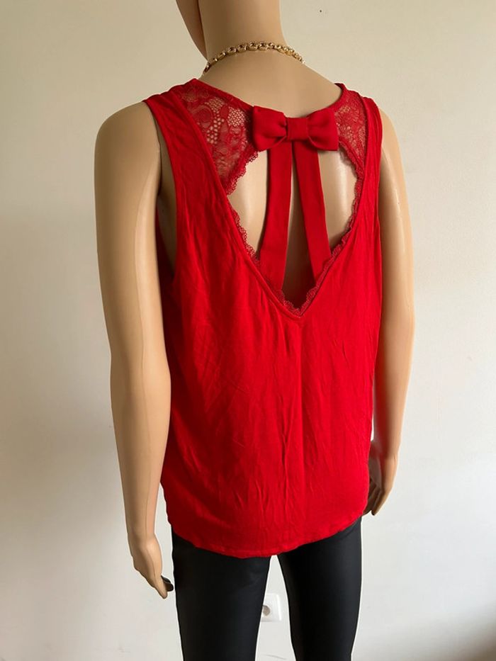 Jolie blouse rouge sans manches, avec dentelle dans le dos, de marque Naf Naf. Taille L. Jamais portée, état neuf. aisselle à aisselle 47 cms taille 49 cms longueur depuis épaule 60 cms 97% polyester et 3% elasthanne Le prix reste négociable dans la limite du raisonnable. Un petit cadeau dans le colis 🌸 (Boîte 1)